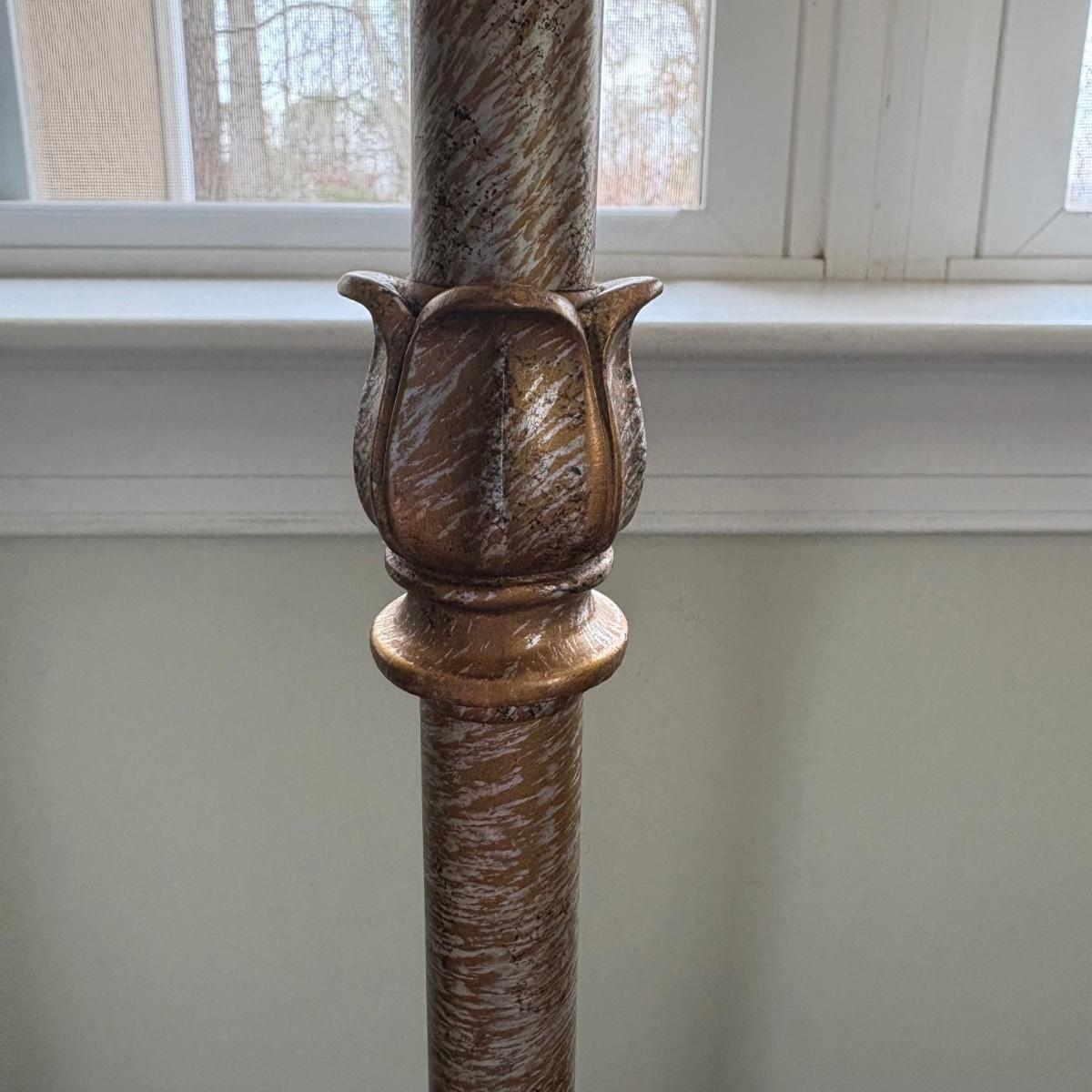 5” x 5” square base, 33”H. Table in picture not included. Shipping available. Shipping can be costly. We suggest contacting our preferred local shipping provider, Postage Express, with dimensions and getting an estimate before bidding: (828) 255-9250 or shipping@postageexpressnc.com.