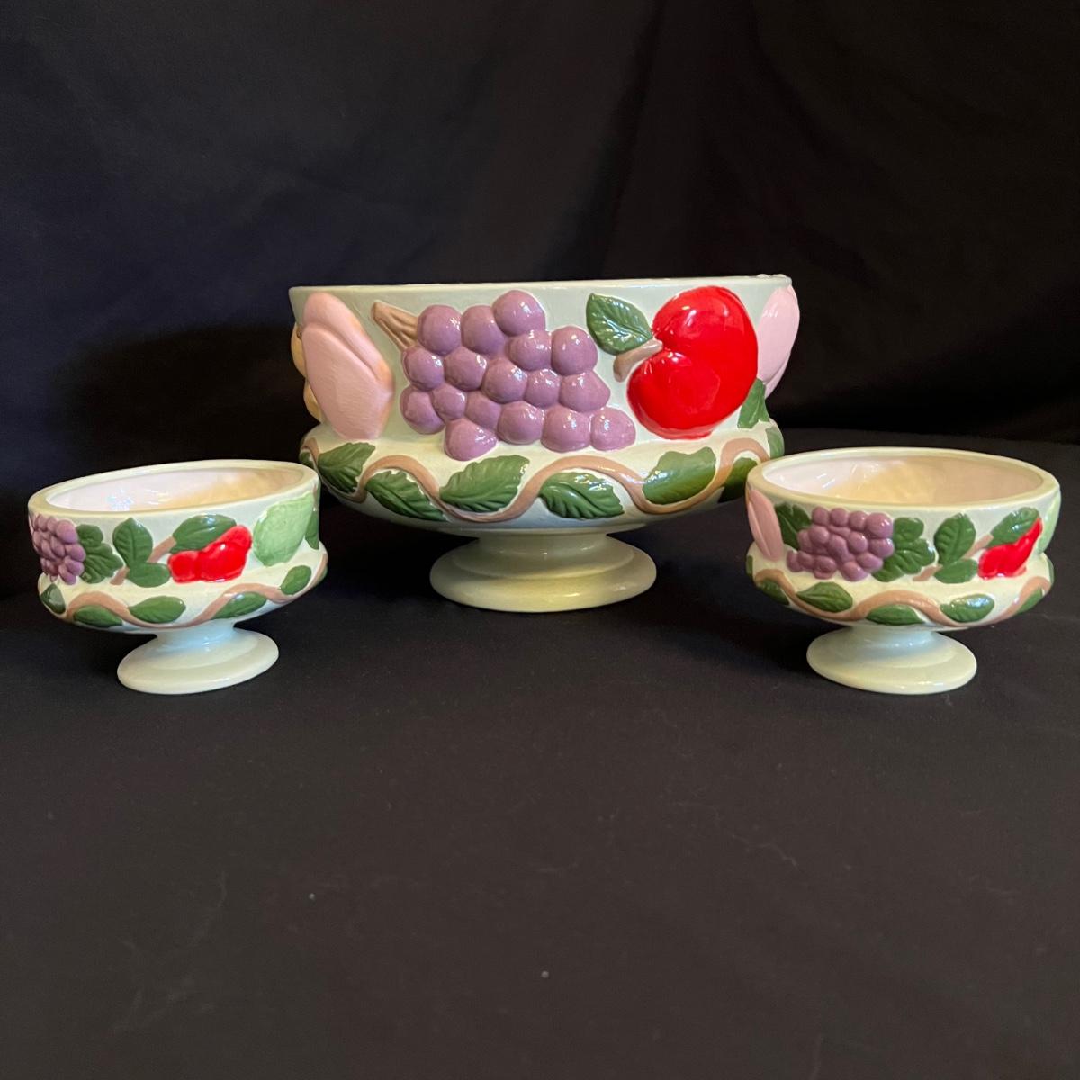 Matching Three Piece Fruit Adorned Ceramic Bowls (DR-RG)
