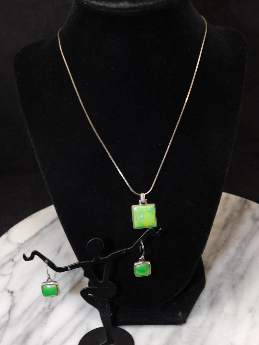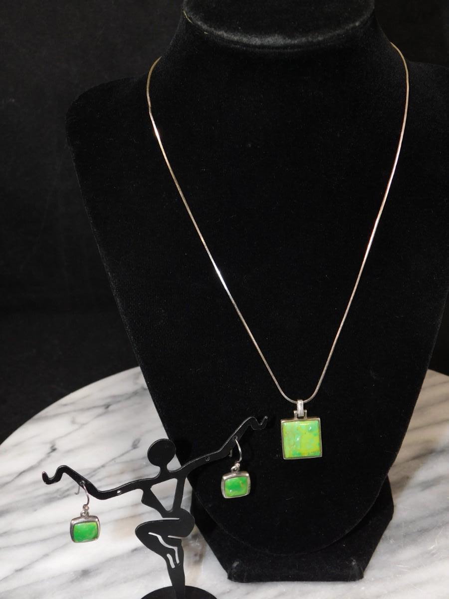 Matching Turquoise? 925 Sterling Earrings & Necklace 20”, 10.8g