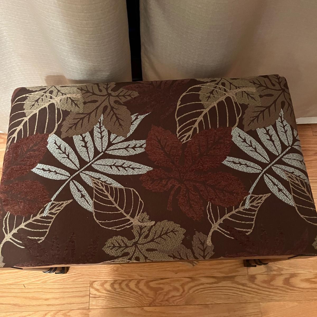 Lot includes four drape panels that measure 40” x 86”H, two valances with one measuring 92” x 4” x 17”H and one measuring 52” x 4” x 17”H. Also includes bench that measures 52” x 24” x 18”H and two 17” x 17” pillows. Winning bidder must take down drapes and valances, screwdrivers will be needed.