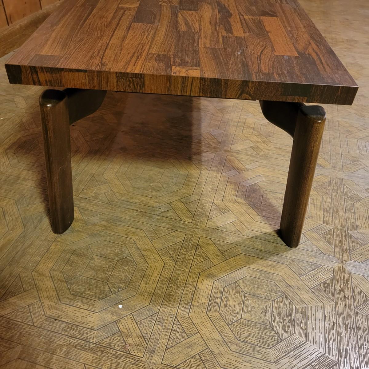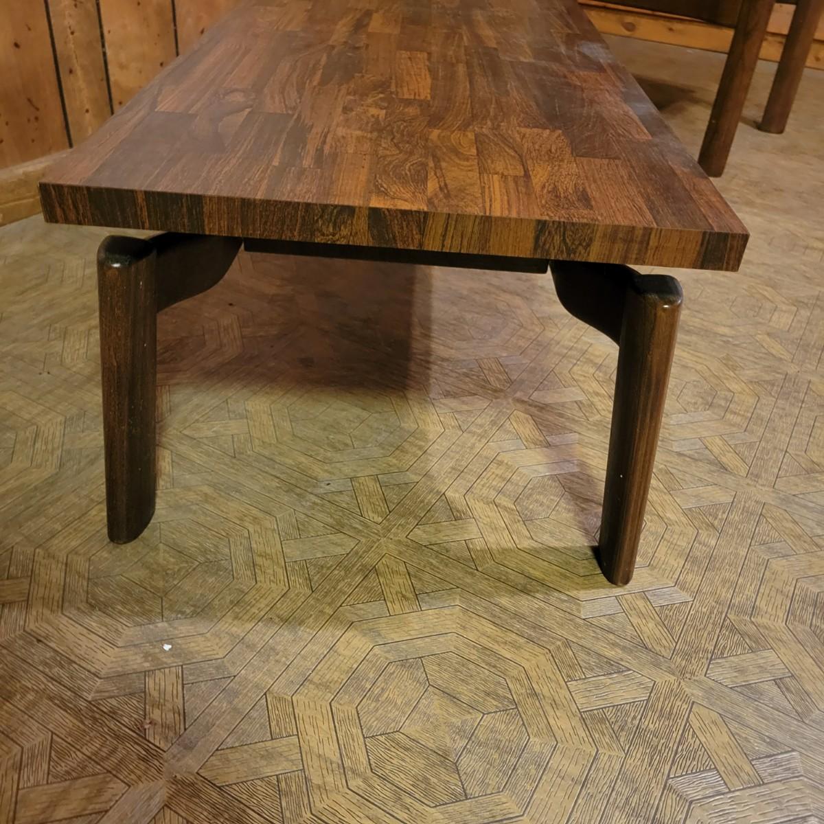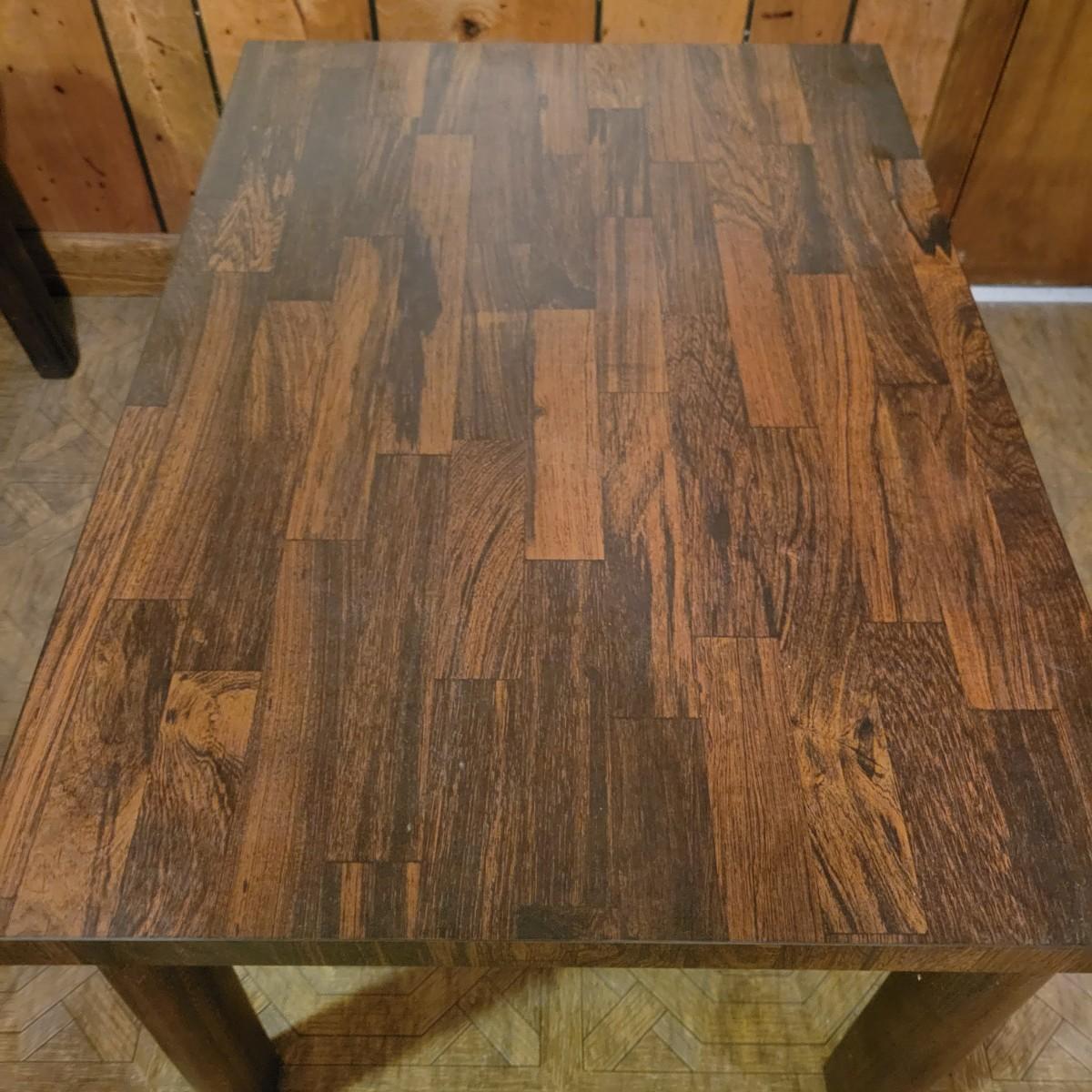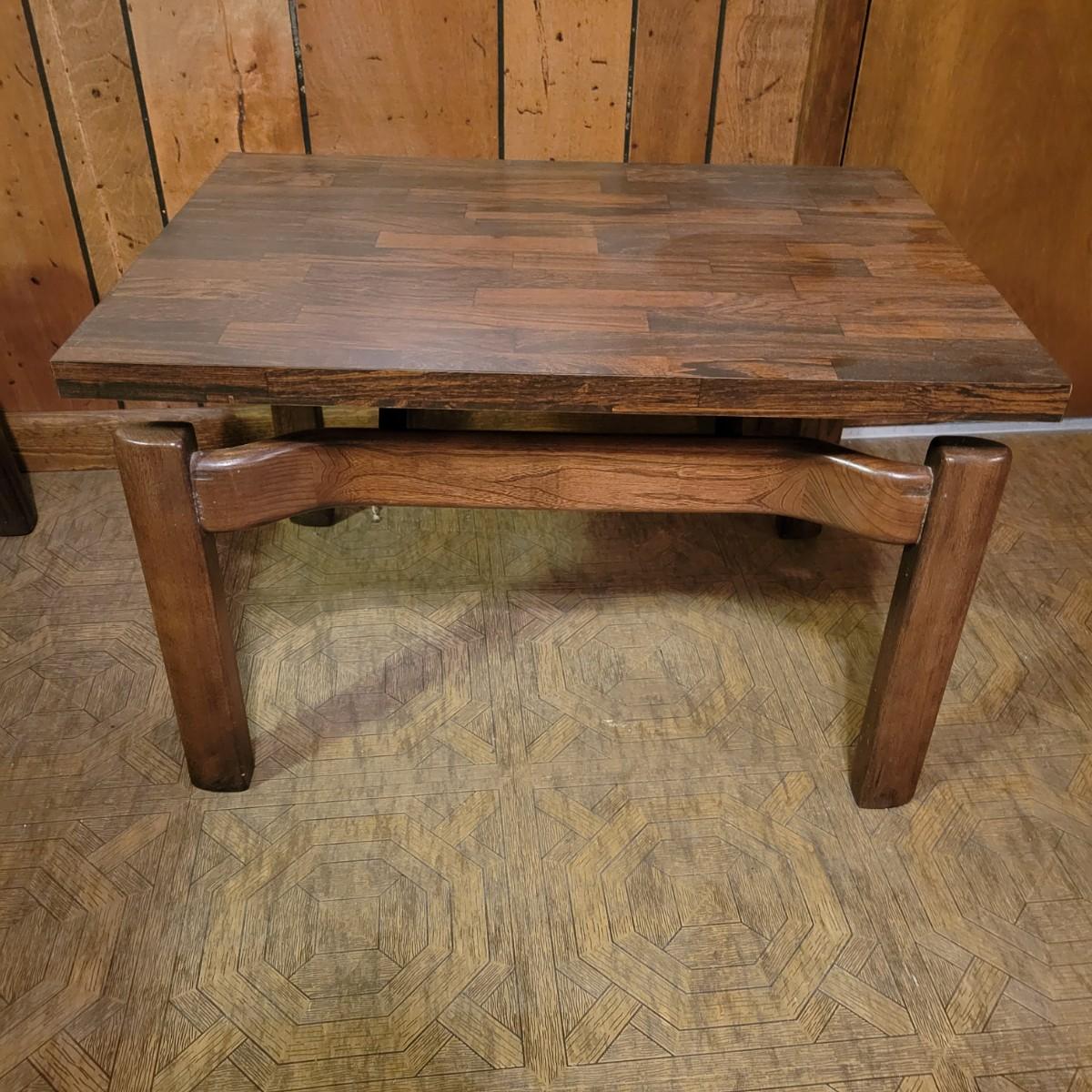 Matching Side and Coffee Tables that are constructed to look like the tops are floating above the legs. The bases of both tables are solid wood and the tops are engineered wood with a parquet like laminate. Coffee table measures approximately 48" x 20" x 15"H and the side table measures approximately 28" x 20" x 18"H. Local pickup only