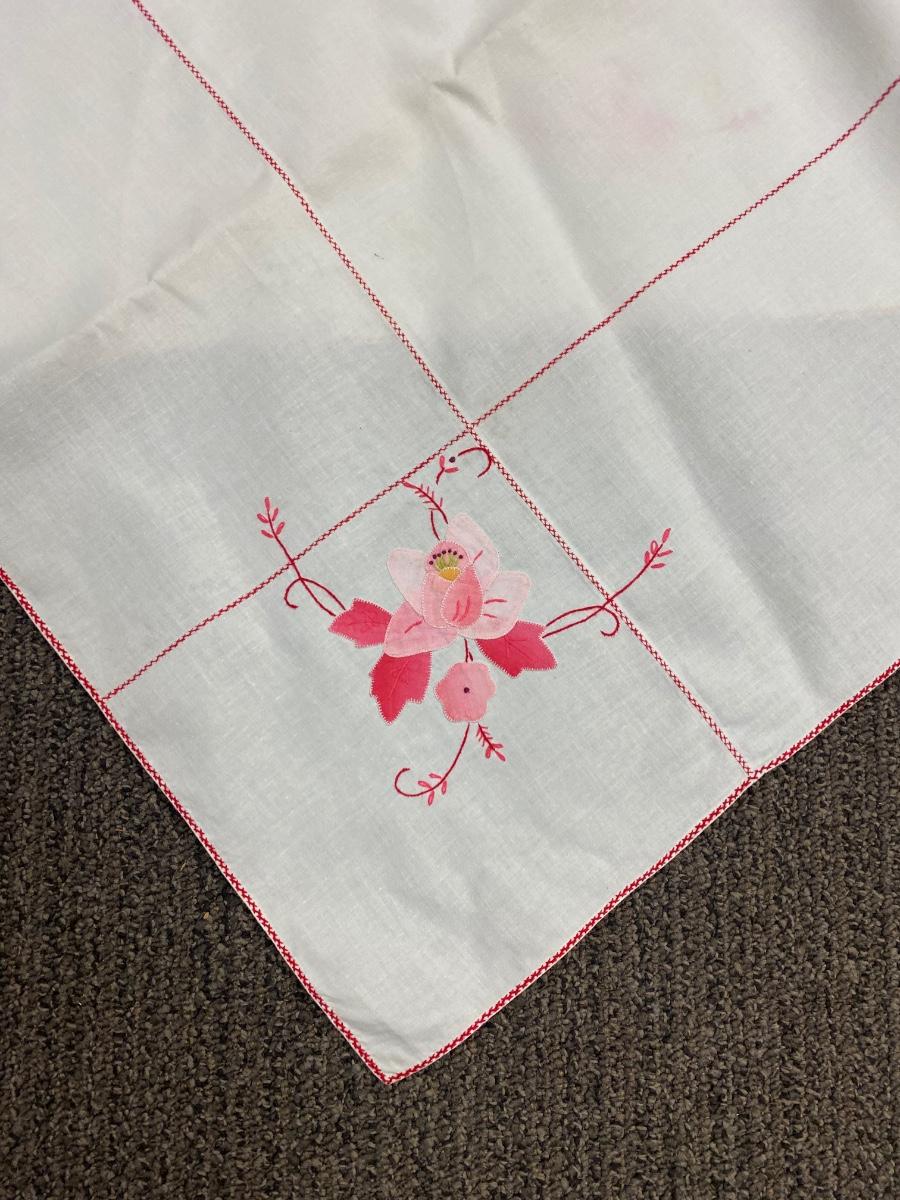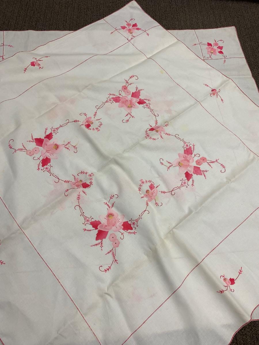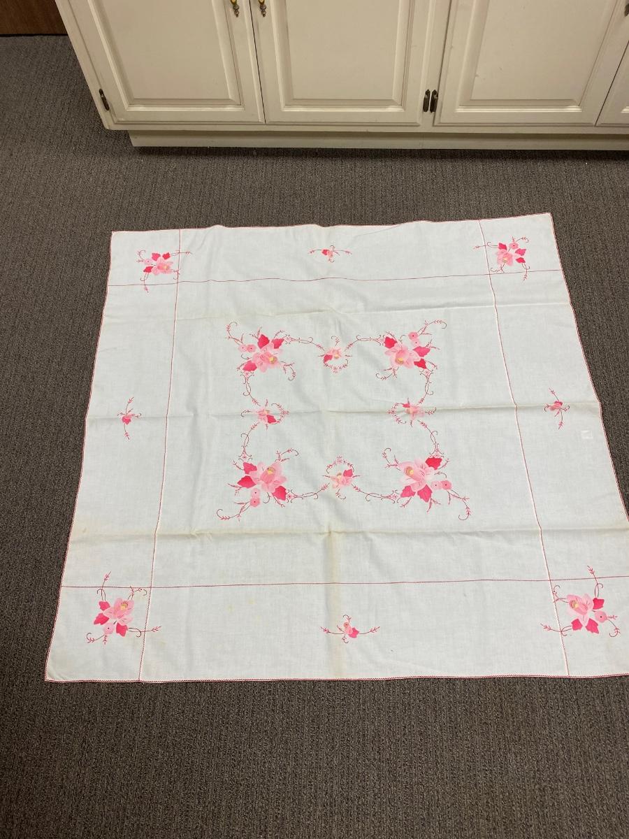 Matching Vintage Pink Flower Embroidered Applique Tablecloths