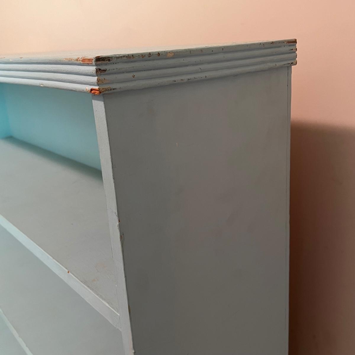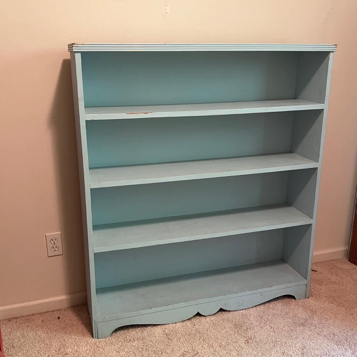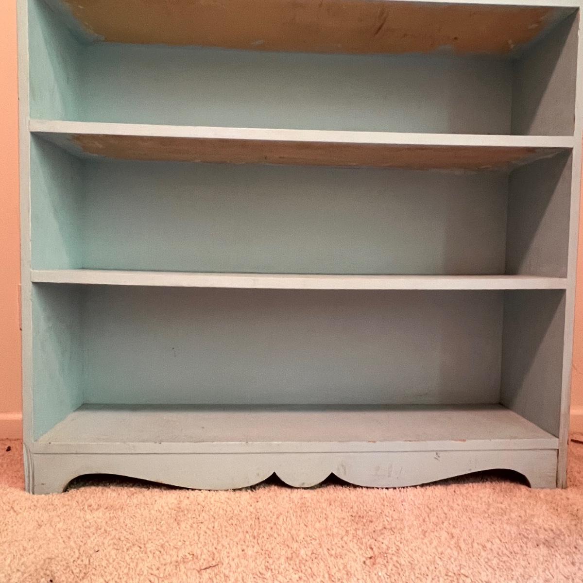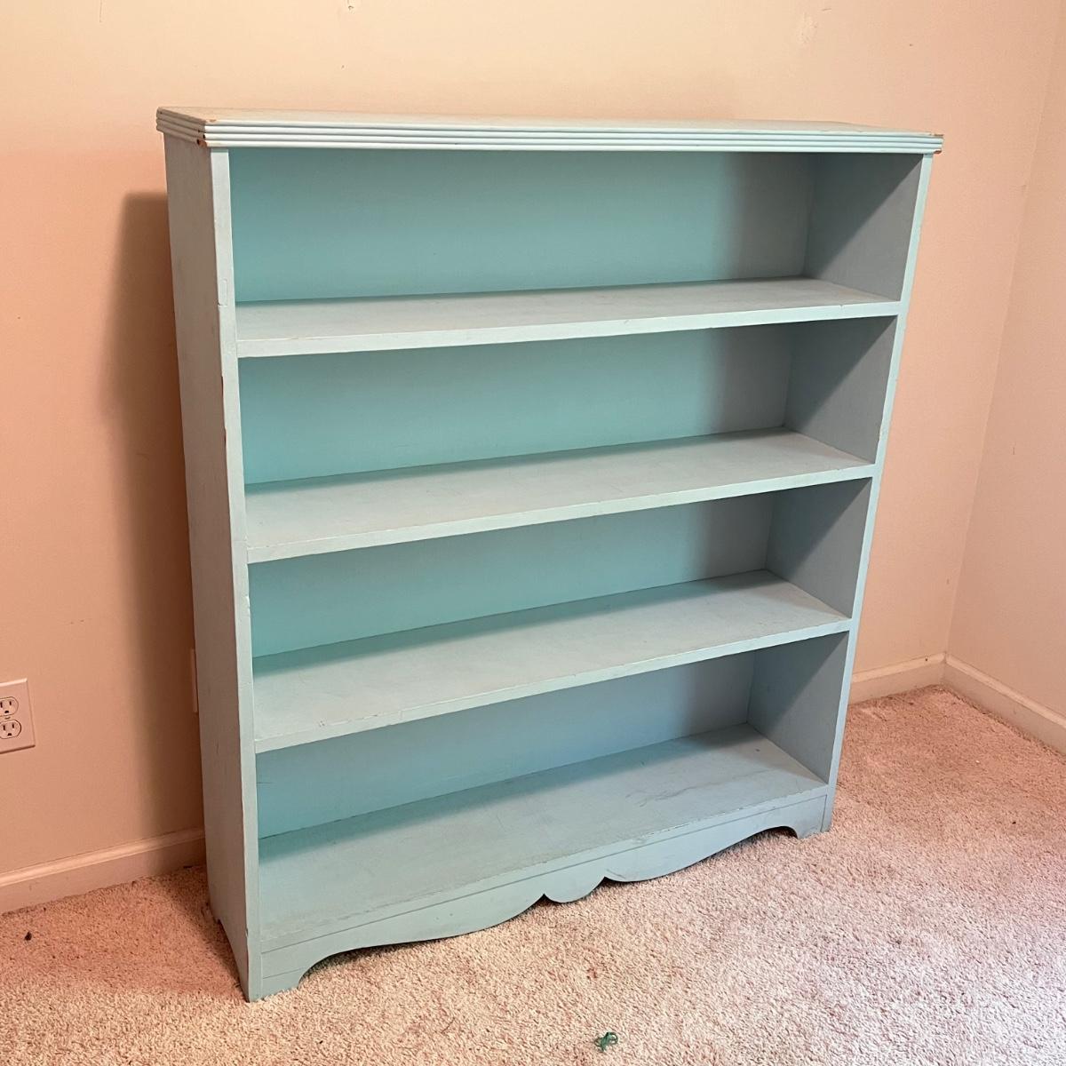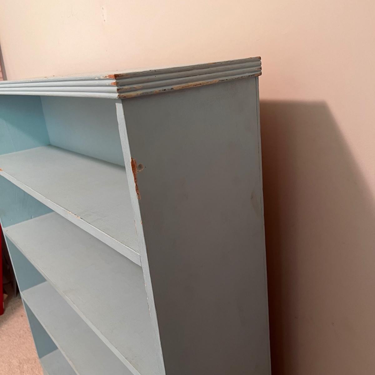 This pair of matching wooden bookcases are painted in a light blue. They both measure 42.5” x 10” x 47”H. There are a few signs of wear and gouges with scratches on both - see pictures included. Local pickup only. Winning bidder must bring assistance to help move and load this item due to its weight and/or size. Both bookshelves are located on the second floor.