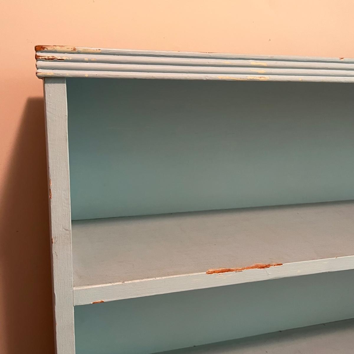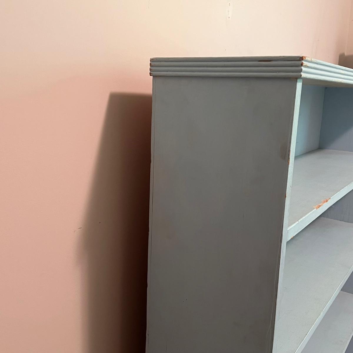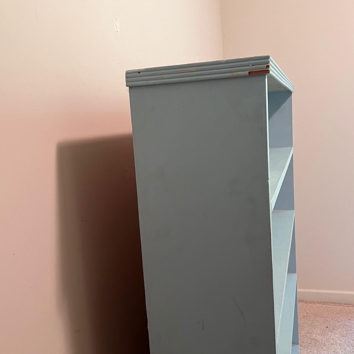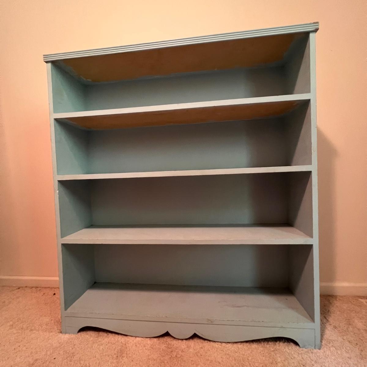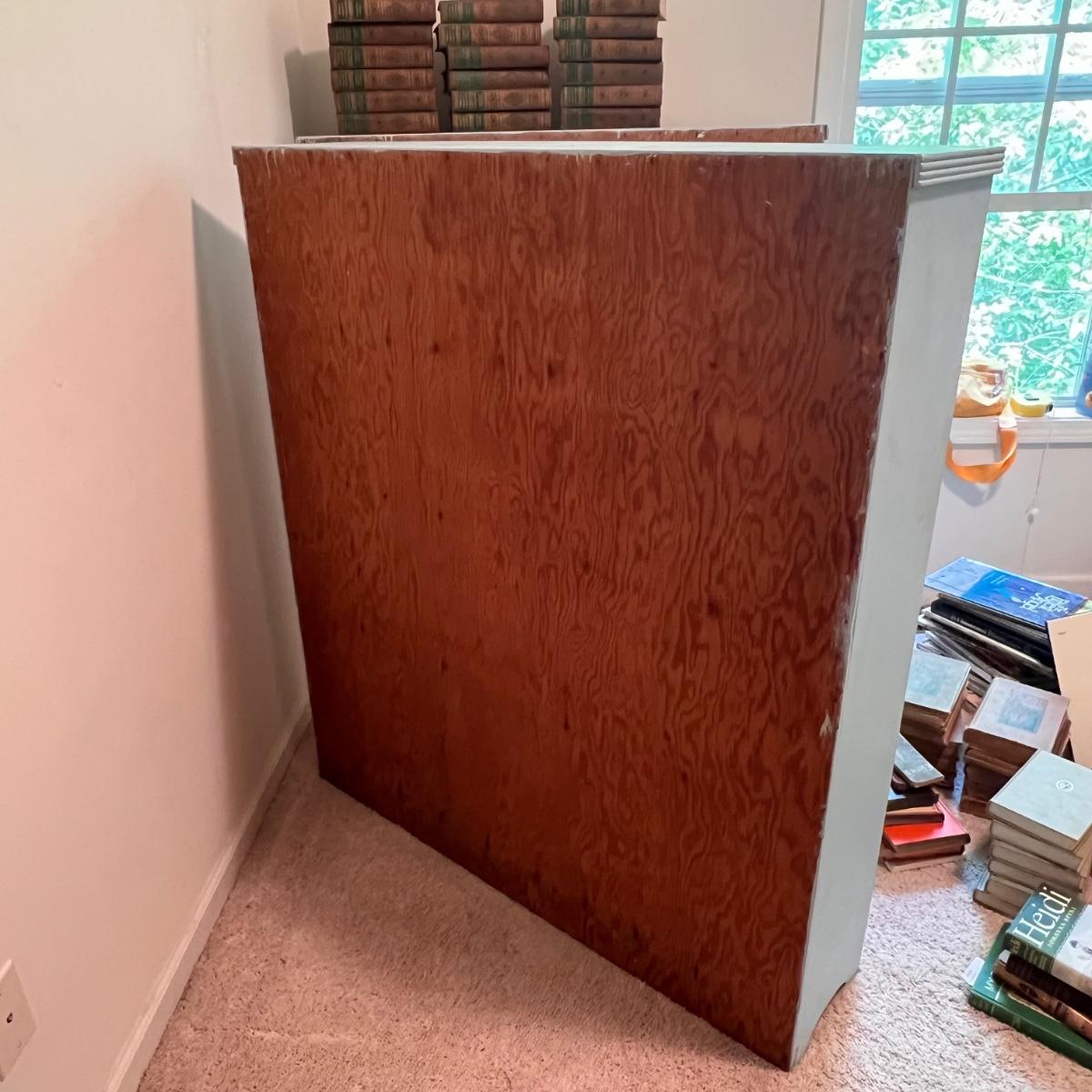 This pair of matching wooden bookcases are painted in a light blue. They both measure 42.5” x 10” x 47”H. There are a few signs of wear and gouges with scratches on both - see pictures included. Local pickup only. Winning bidder must bring assistance to help move and load this item due to its weight and/or size. Both bookshelves are located on the second floor.