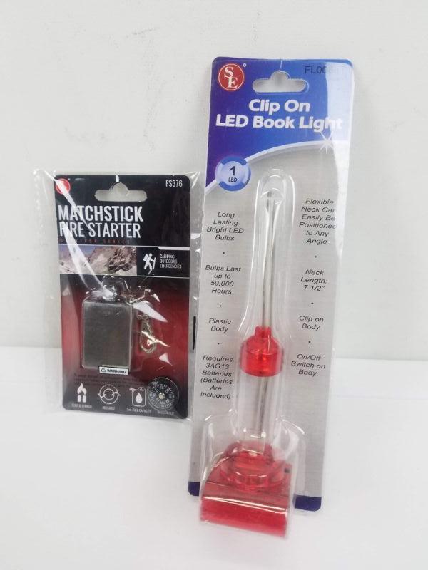 Matchstick Fire Starter & Clip On LED Book Light - New