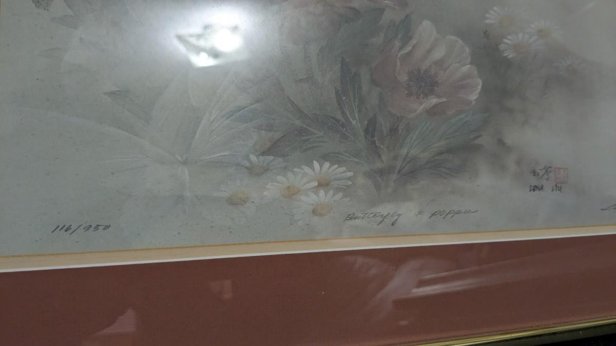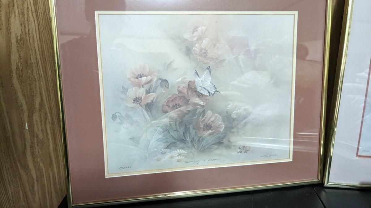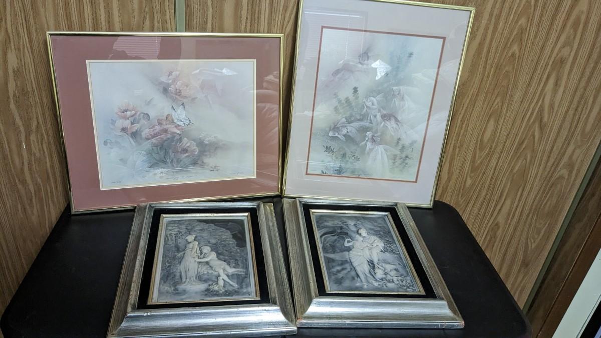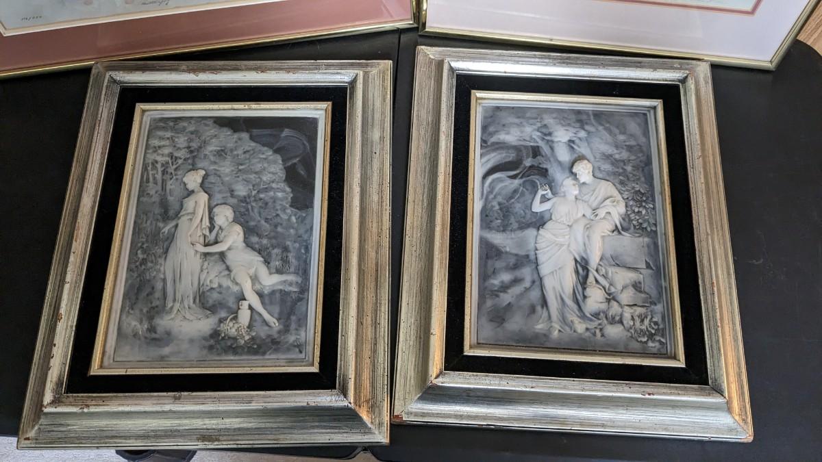 4ea, 2 are signed and numbered by Lena Liu and are in great 16.25"x 20.25" framed condition. The other 2 are stunning hand carved marble pieces, 13"x 16" framed and SO beautiful. Please note very small crack in corner of one piece. Inquire for shipping. bdrm1