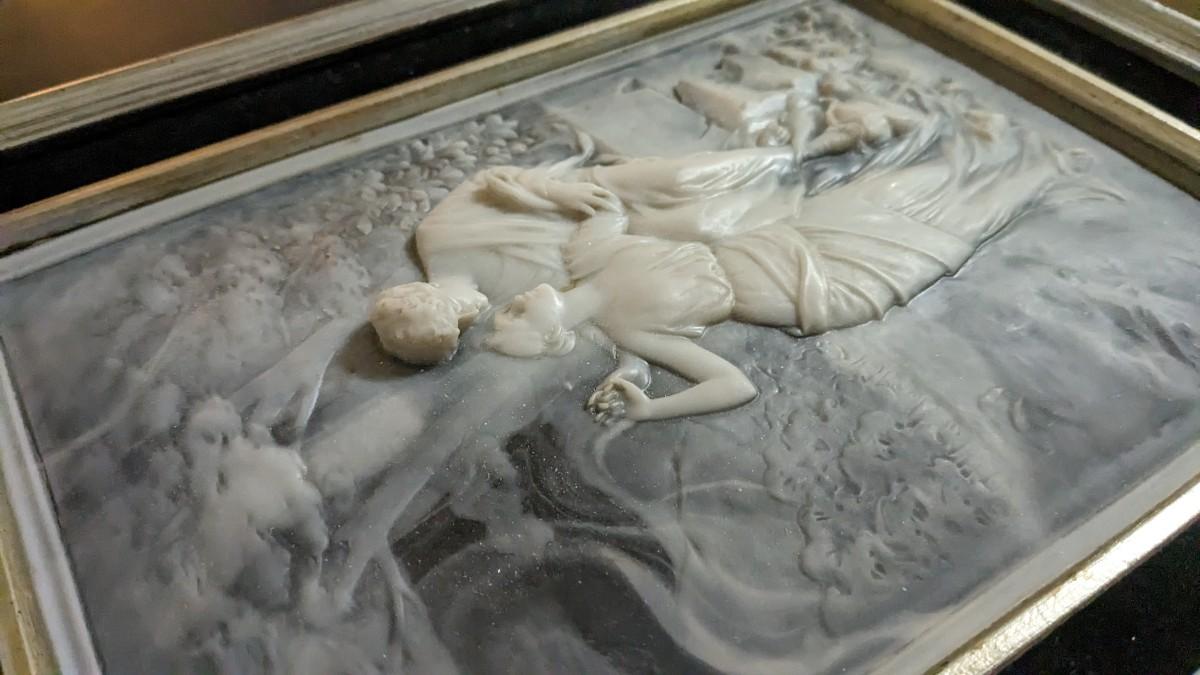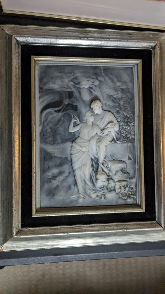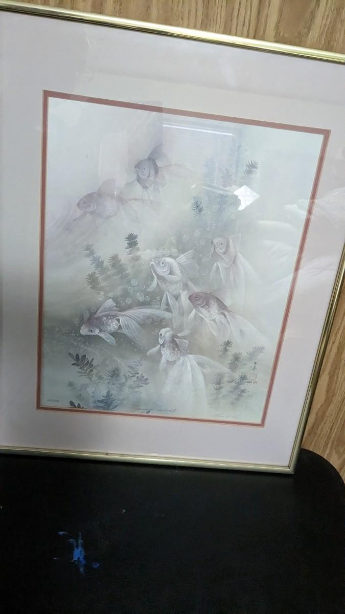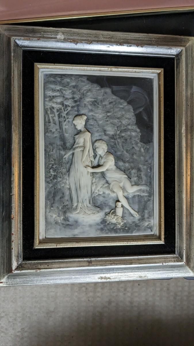 4ea, 2 are signed and numbered by Lena Liu and are in great 16.25"x 20.25" framed condition. The other 2 are stunning hand carved marble pieces, 13"x 16" framed and SO beautiful. Please note very small crack in corner of one piece. Inquire for shipping. bdrm1