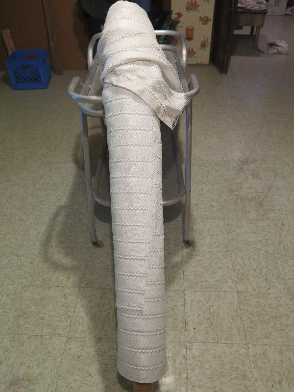 Bolt of fabric is 48 inches long. Do not know how much is left on roll. Soiled on end. Located in basement. Please review all photos and read Terms and Conditions before placing a bid. Pick up is Wednesday, November 20 from 4-7pm and Saturday, November 23 from 9am-2pm in Mantua, New Jersey. All sales are final. All sales are as is, where is. Please bring all boxes, tools, and muscle needed to remove your items. Any photo props are not included. All measurements are approximate. Items come from dog-friendly home.