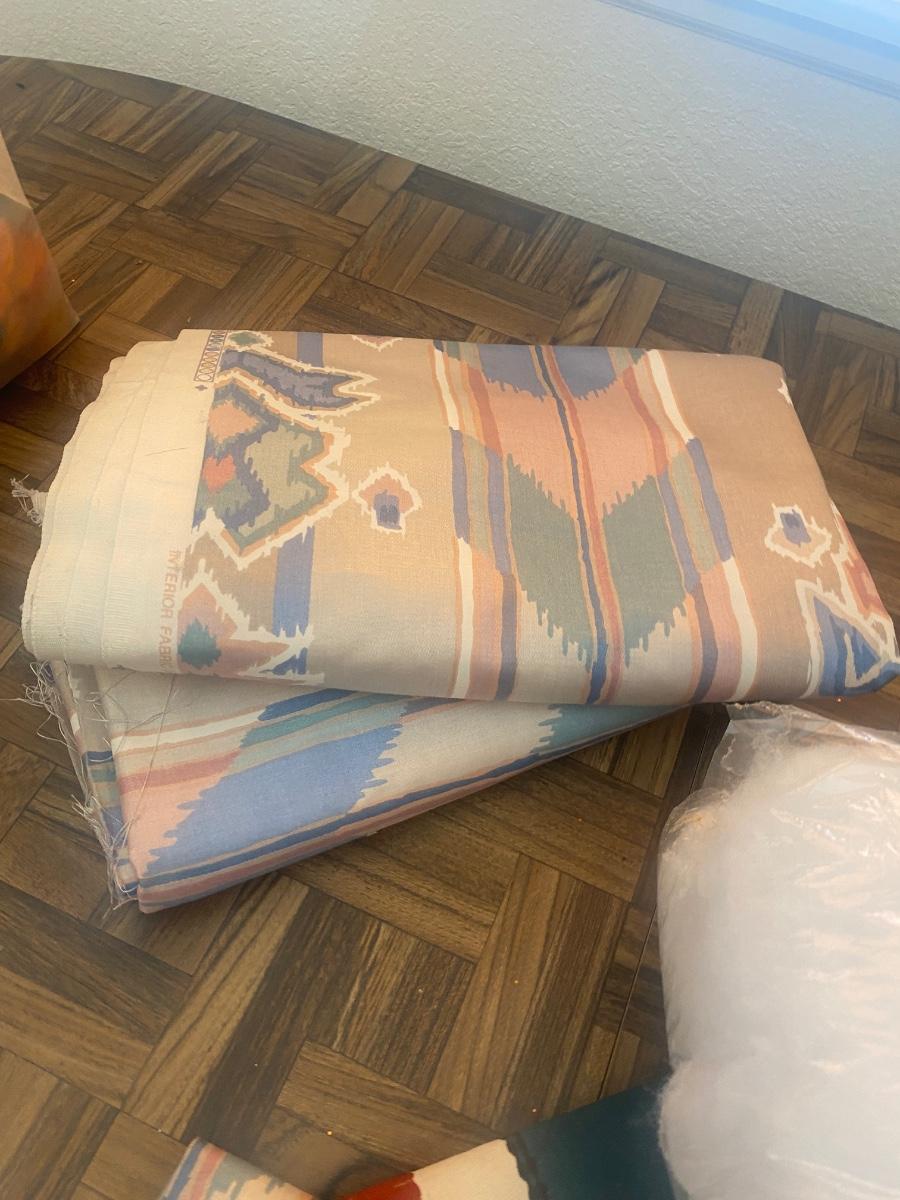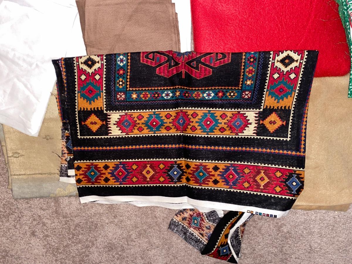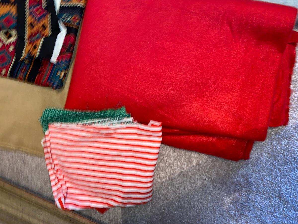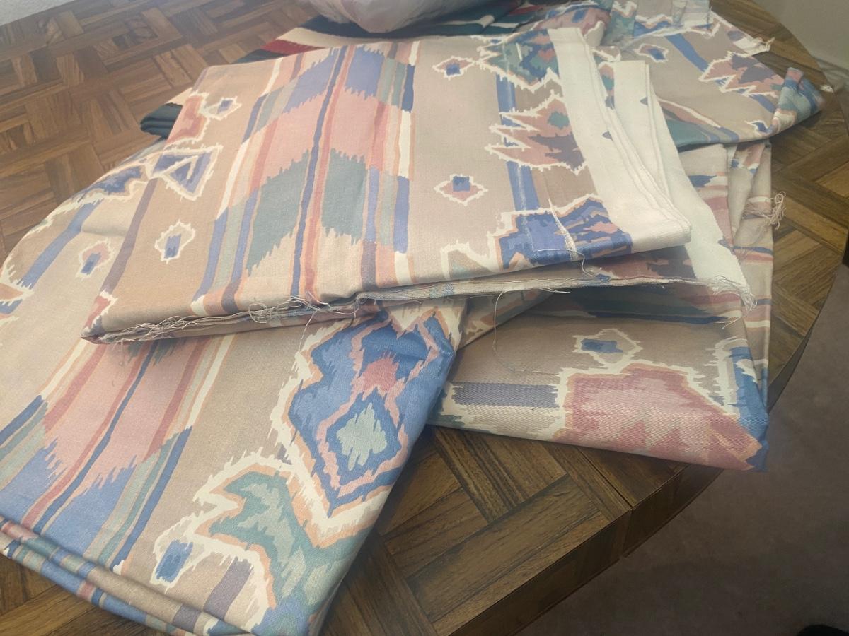 SEVERAL YARDS OF MATERIAL & CUT FOR QUILTING AND OTHER LARGE PIECES OF MATERIAL