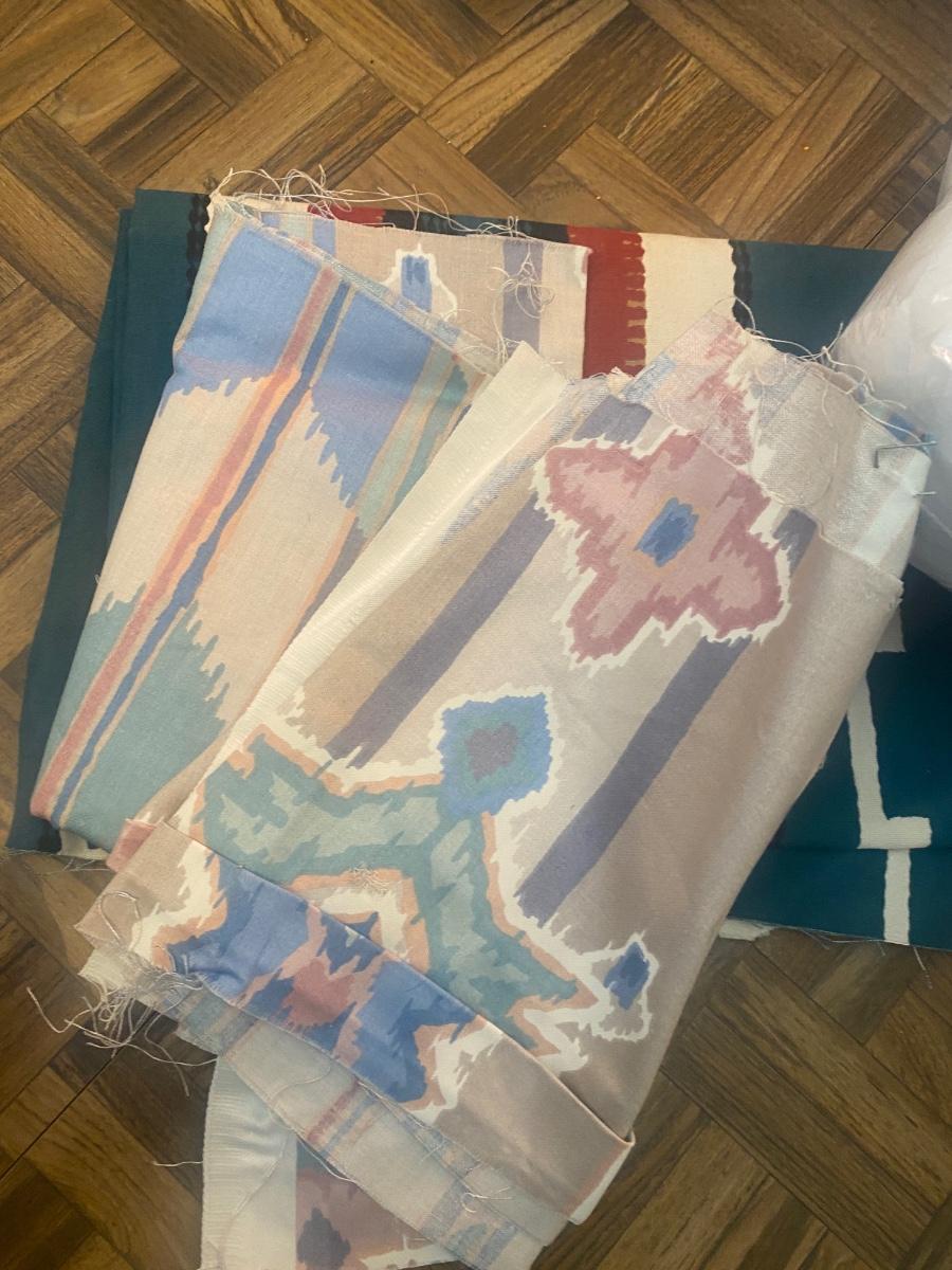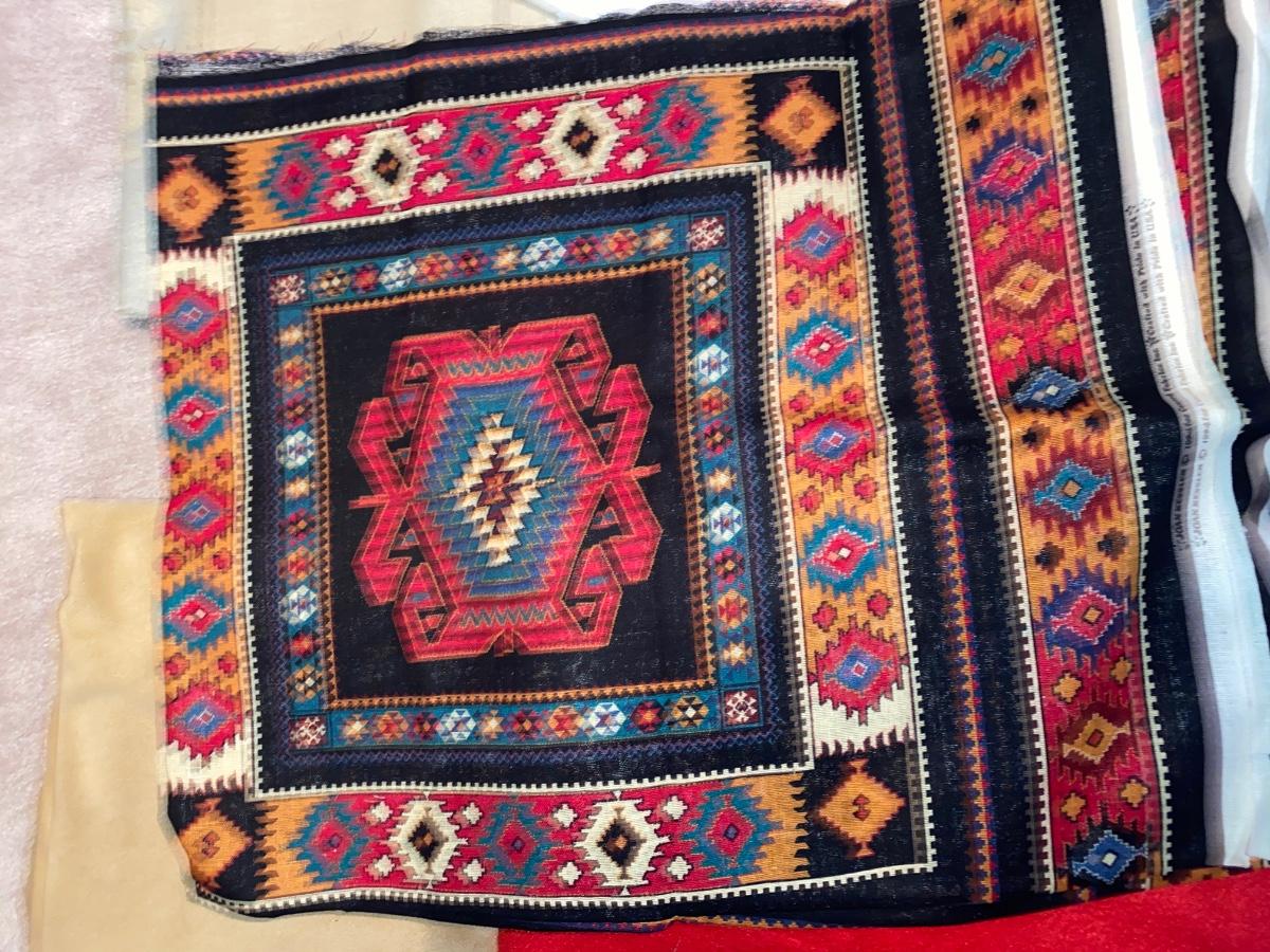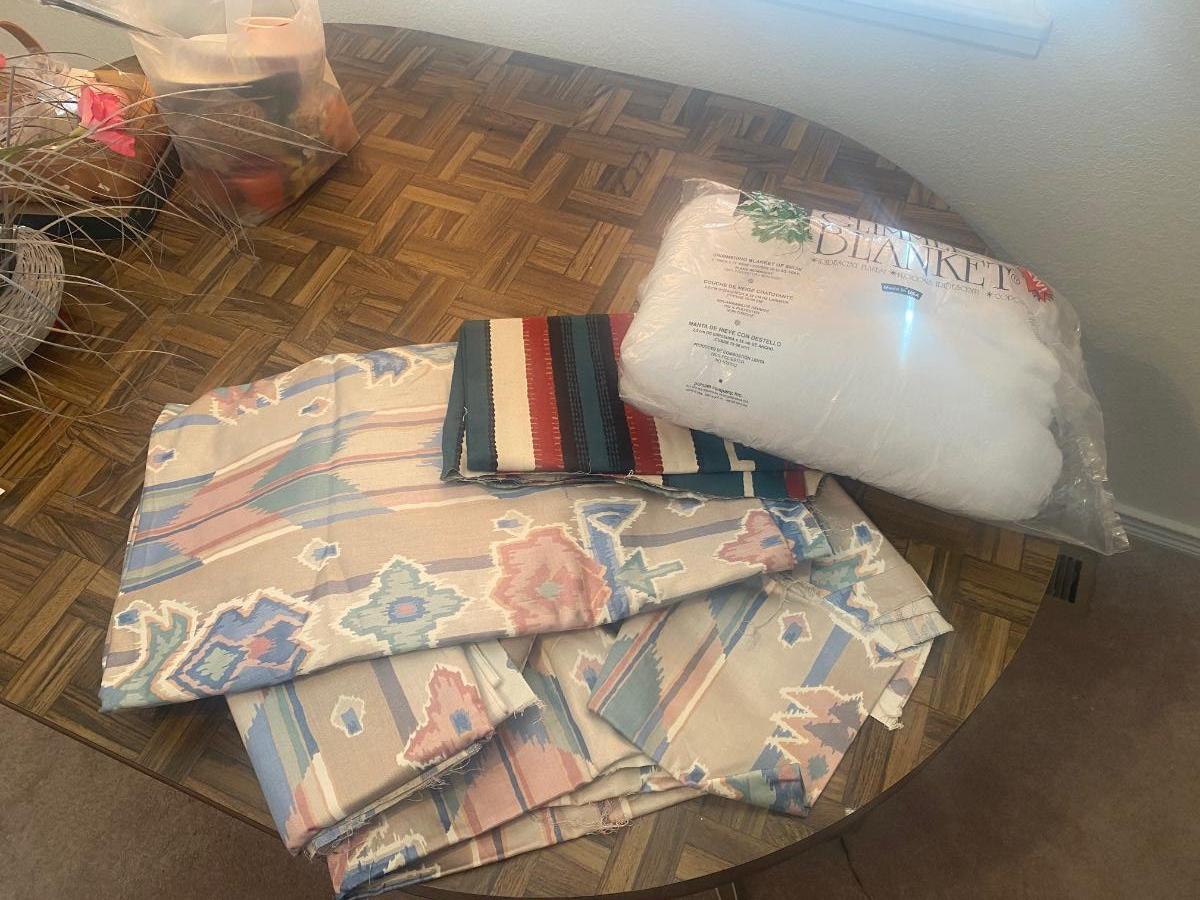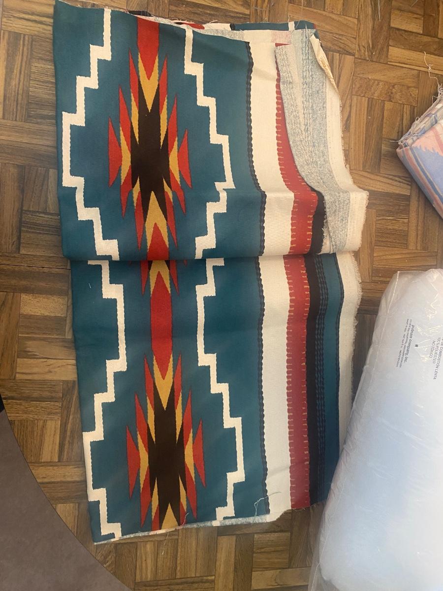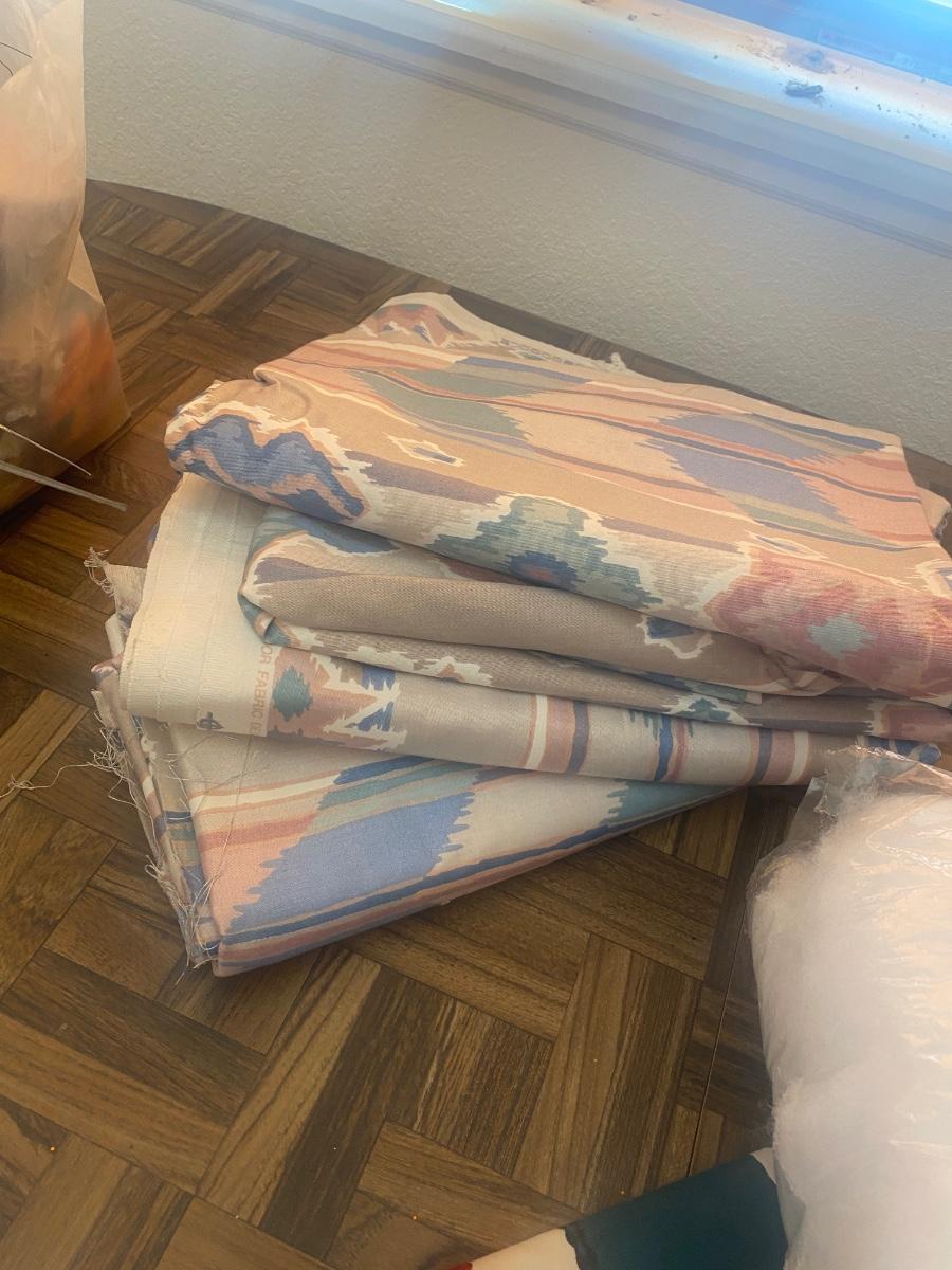 SEVERAL YARDS OF MATERIAL & CUT FOR QUILTING AND OTHER LARGE PIECES OF MATERIAL