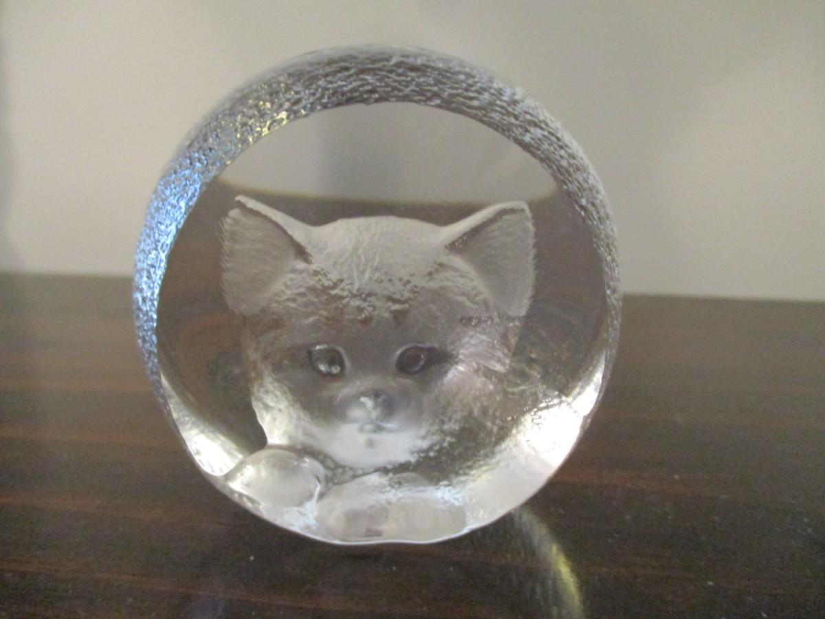 Mats Jonasson 3D Cat Sweden Etched Crystal Signed Paperweight