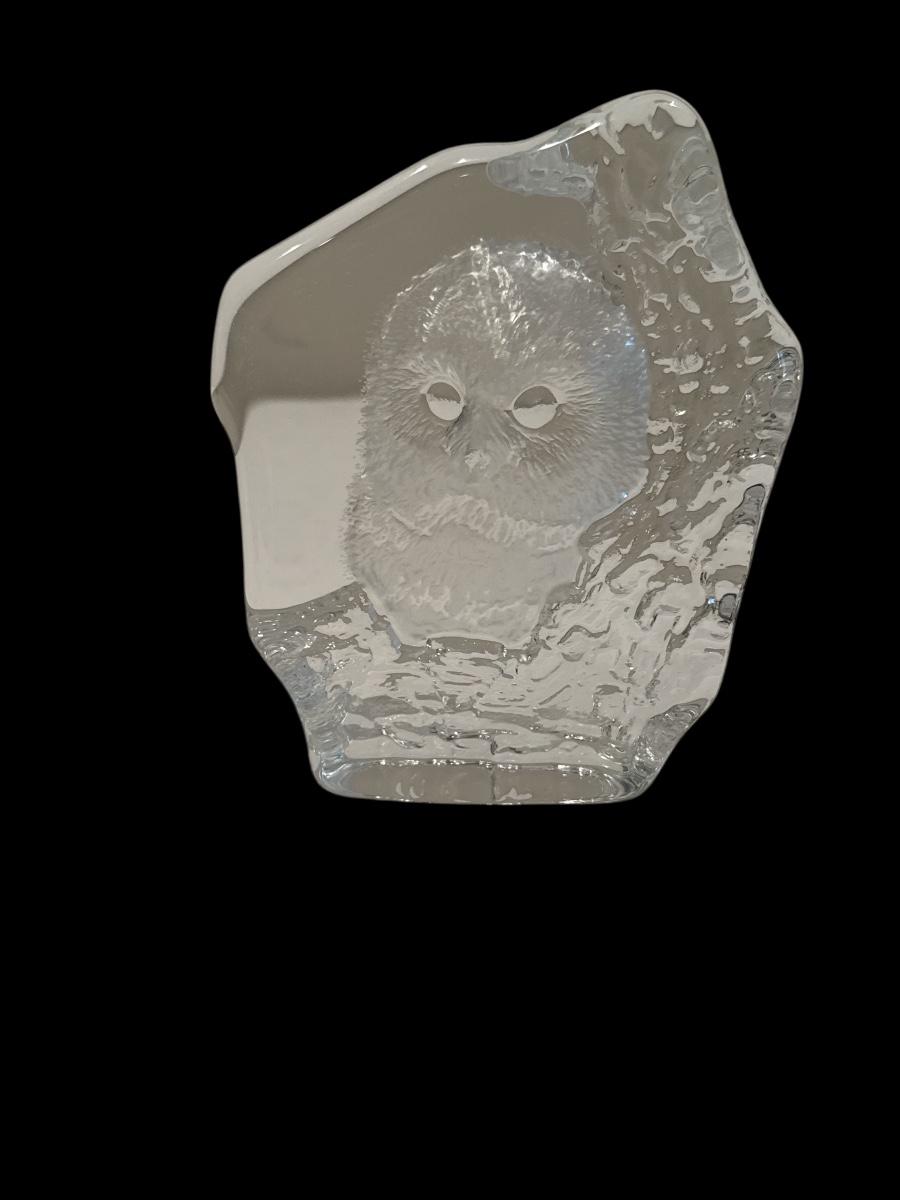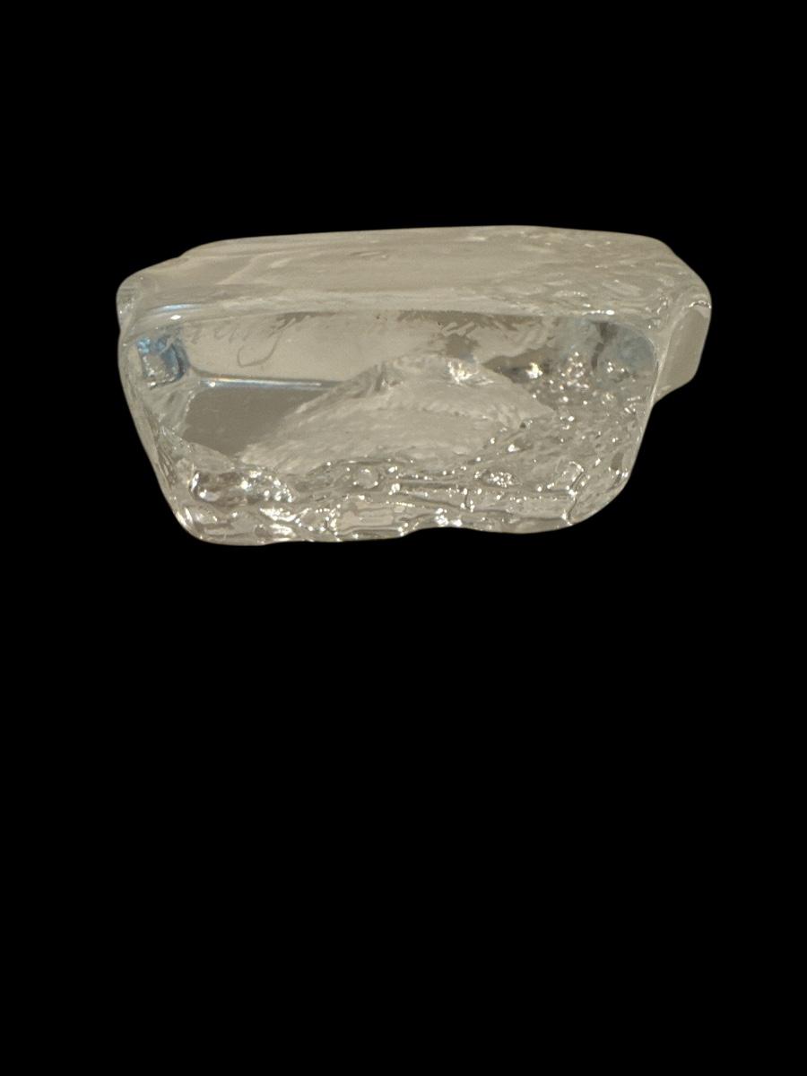 • Signature: The second image shows a faint etched signature along the bottom edge—typical of signed Mats Jonasson pieces.