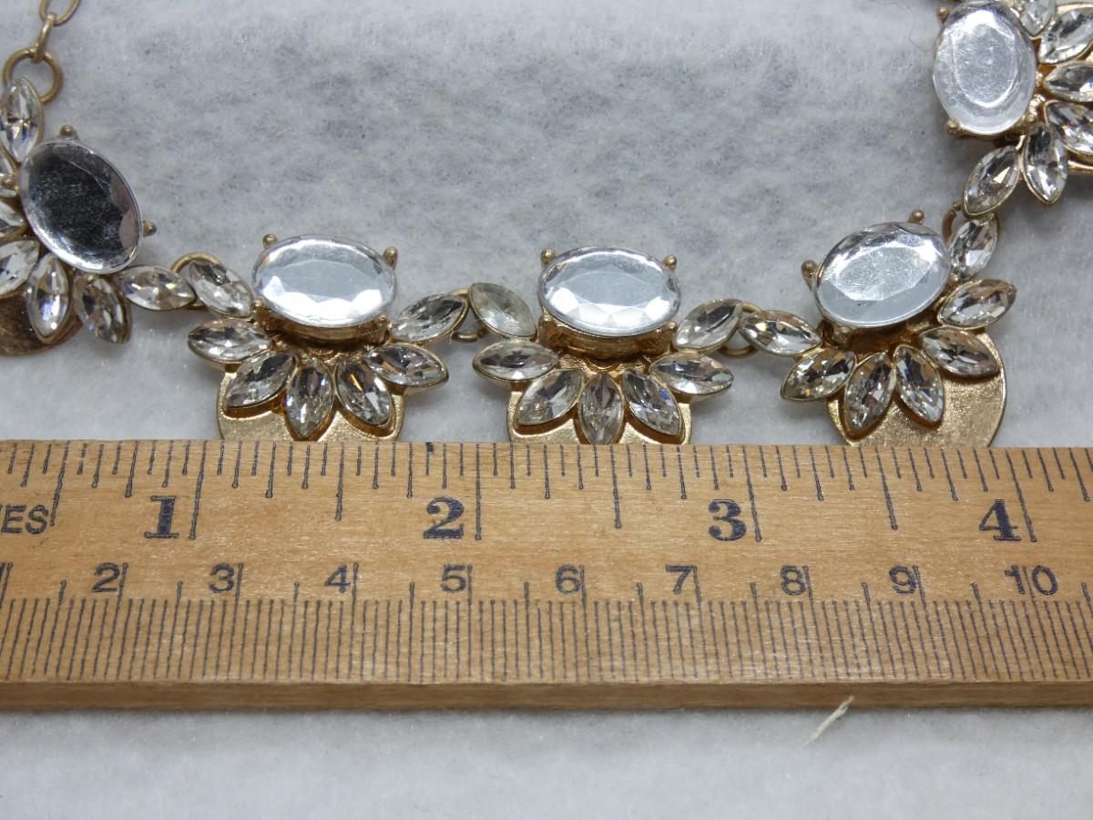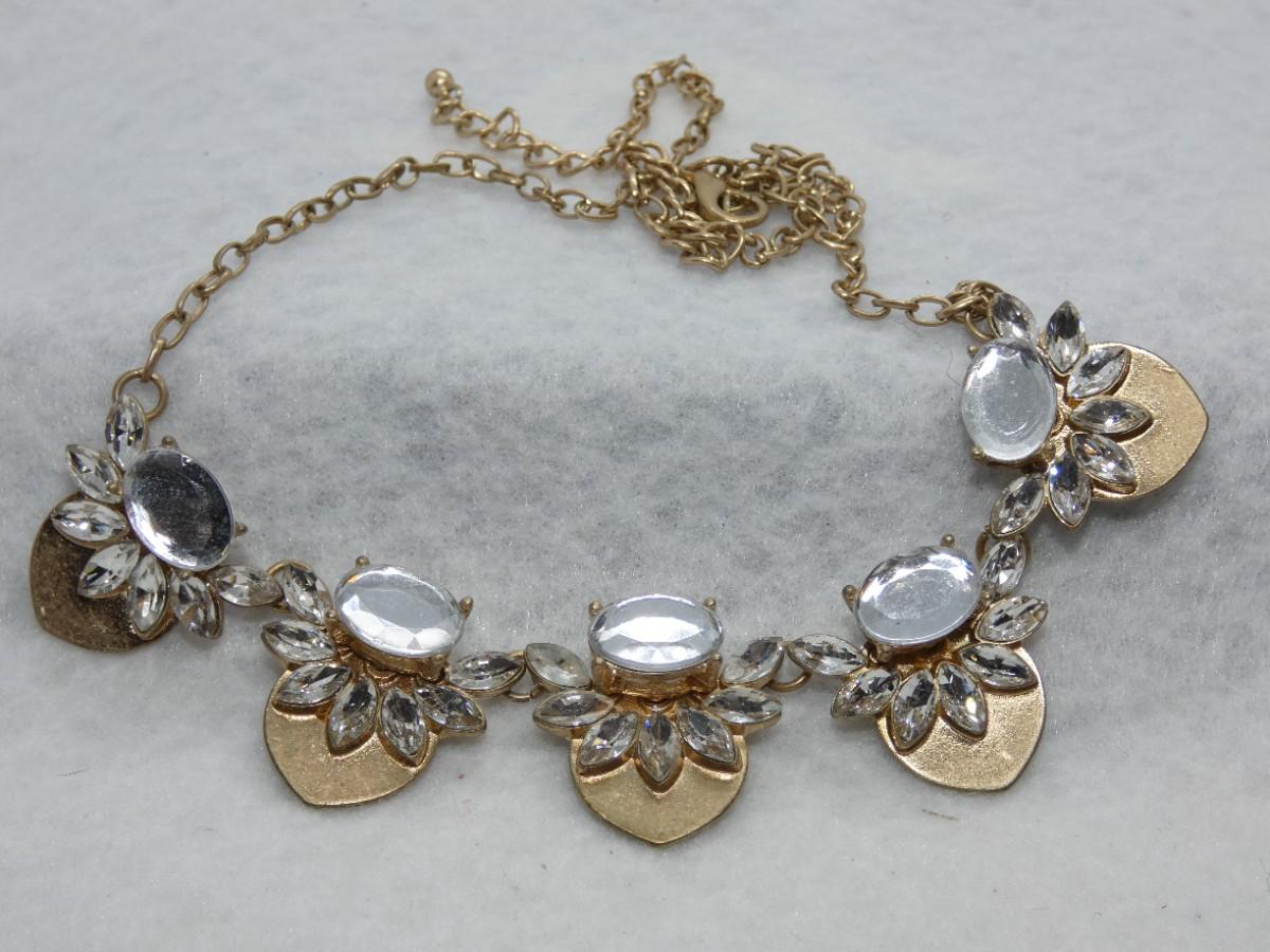 Matt gold Tone Rhinestone Fan Necklace - Art Deco Style