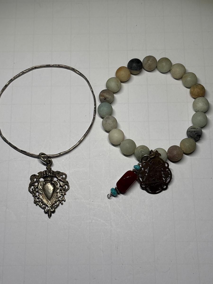 Matte Amazonite beaded stretch bracelet & silver bracelet