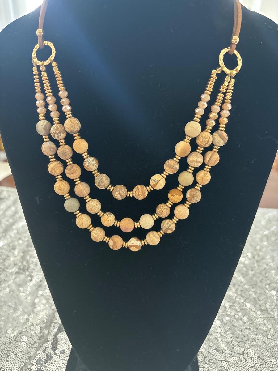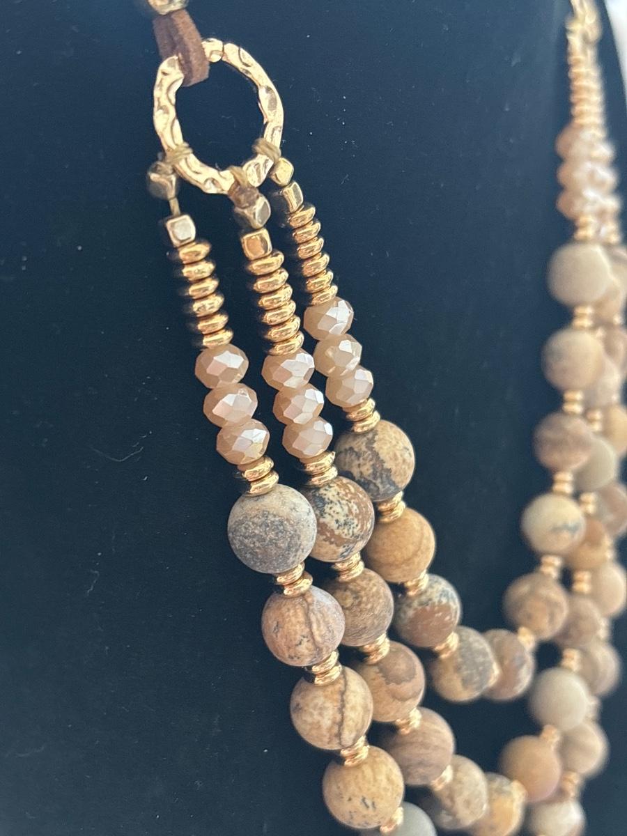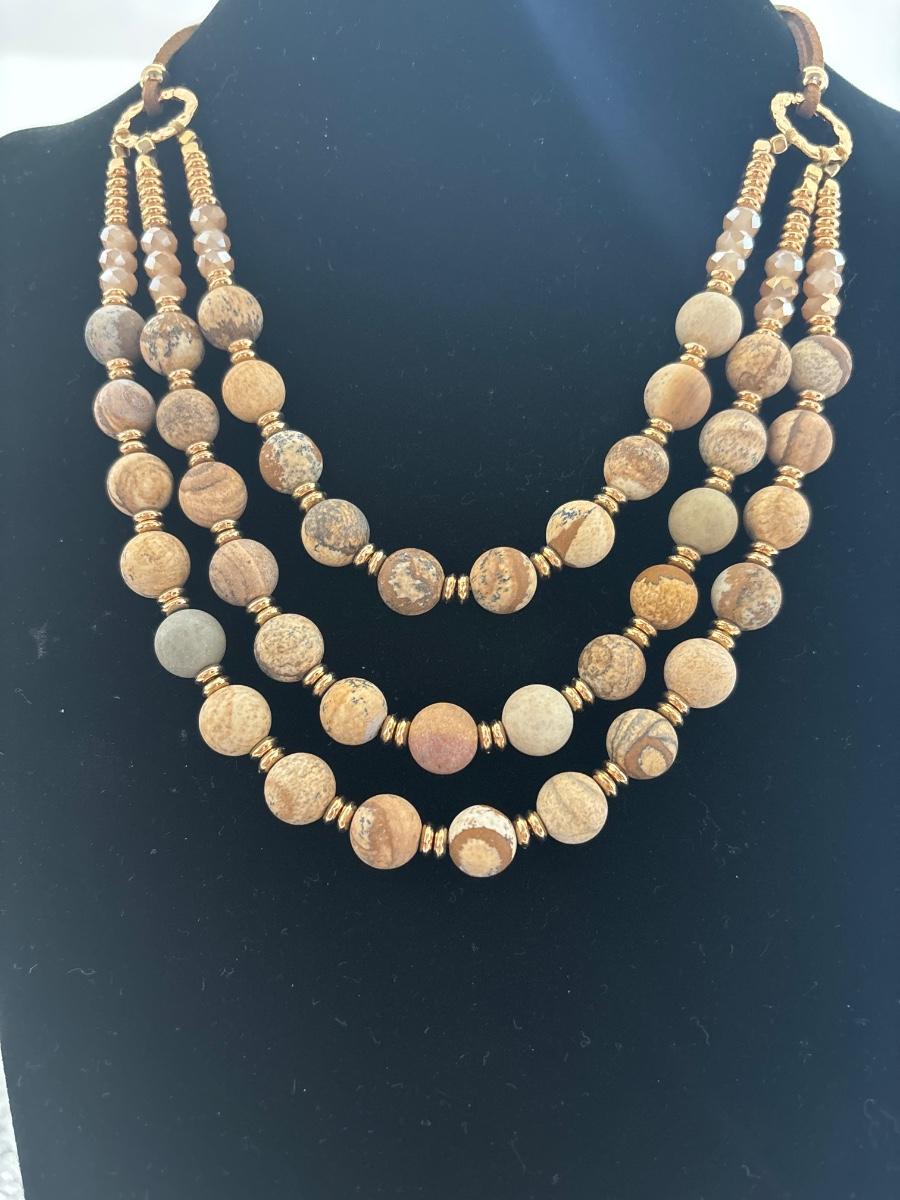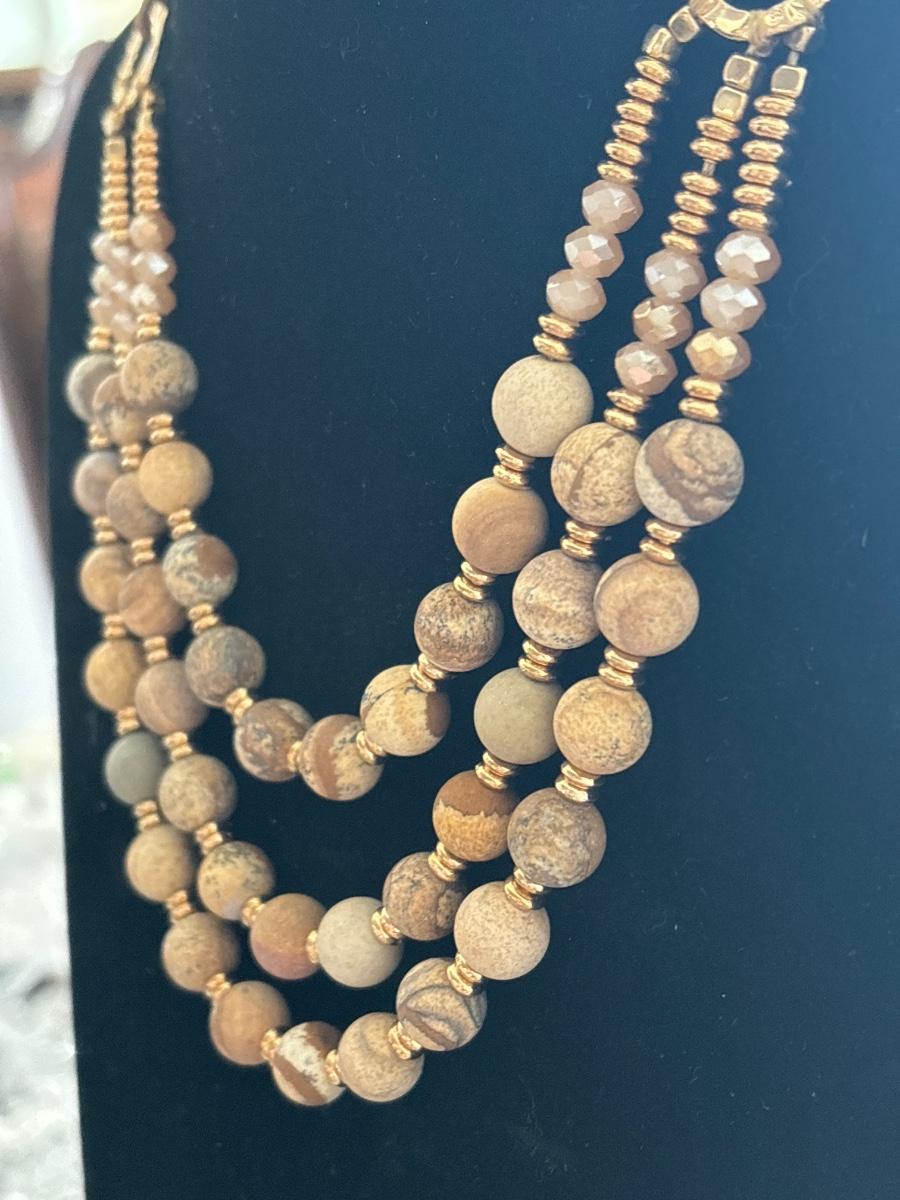 Matte Earthy natural stone necklace, natural color, crystal beads