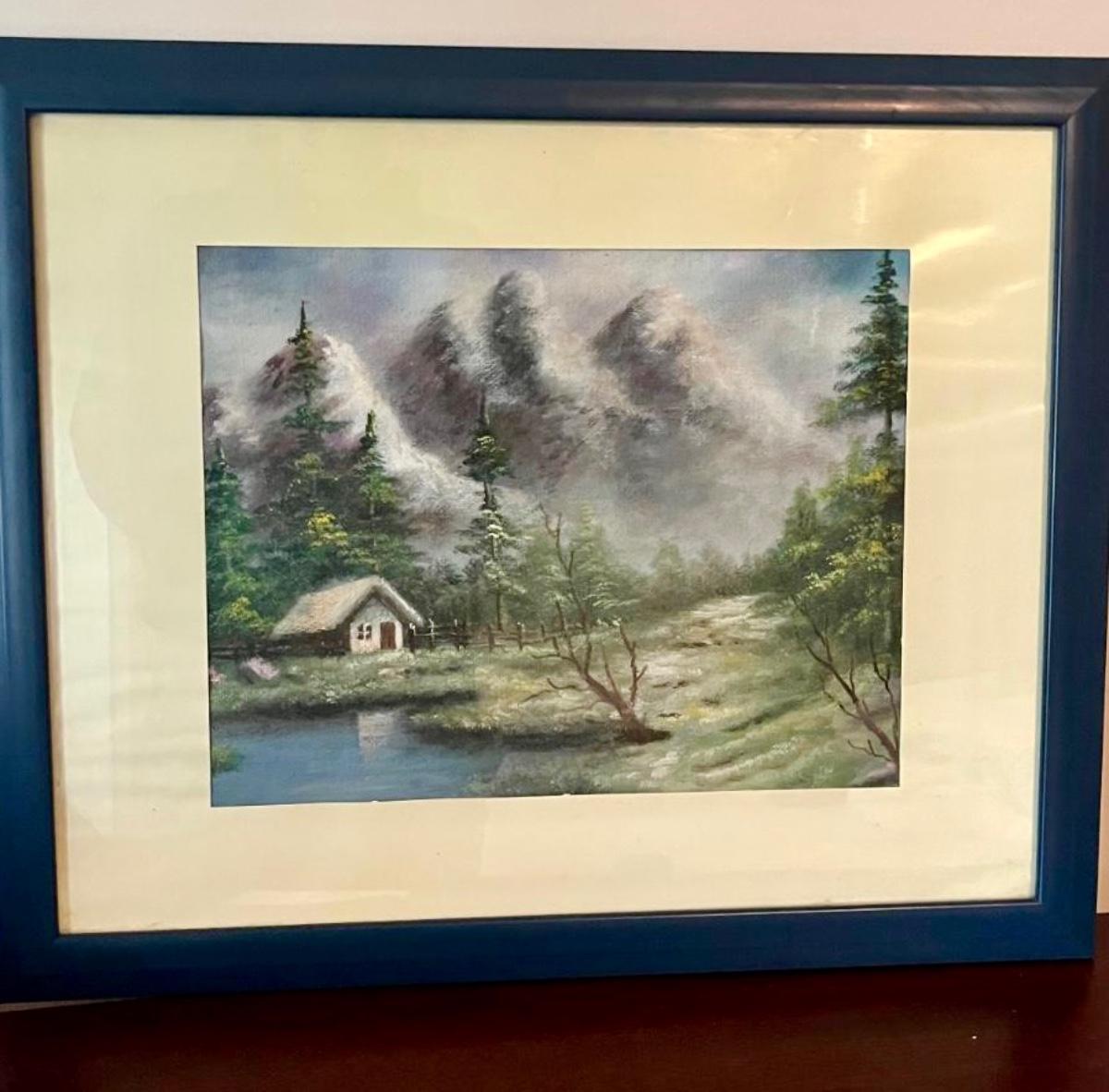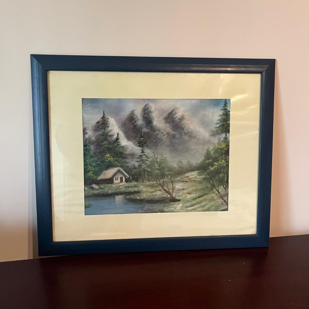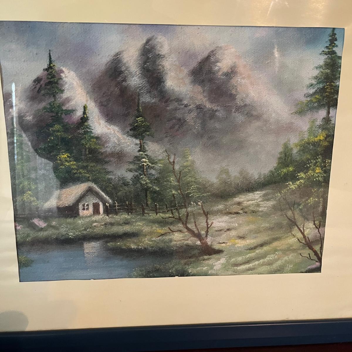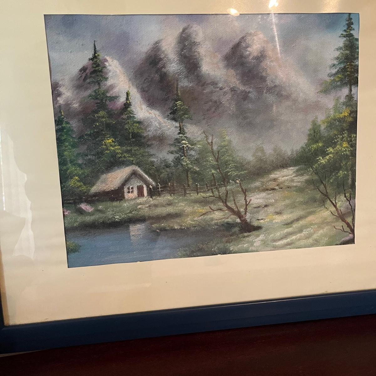 Lot includes a framed and matted painting by unknown artist. Frame measures 22.5” x 18.5”.