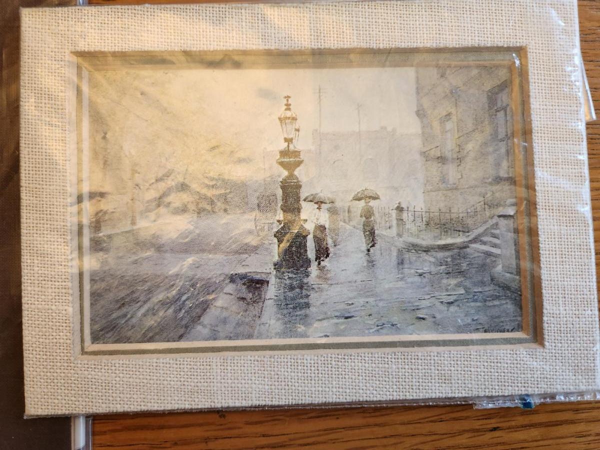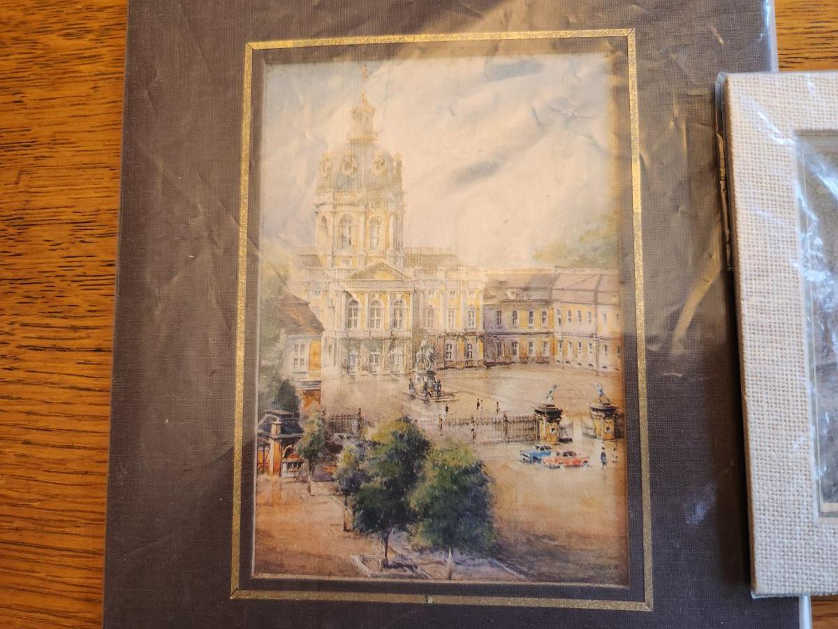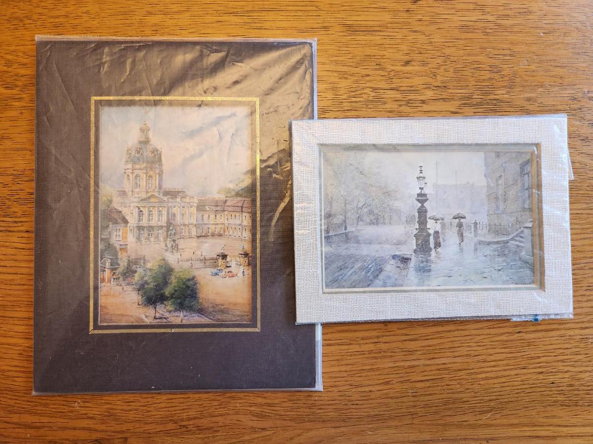 This auction lot is for two Matted Prints ready to frame. The first is a print of One of Berlin's most famous and best-loved sights ““ the rococo Charlottenburg Palace. The 2nd is for a matted postcard of "Wapping Street Fountain" by Paul Sawyier, a Kentucky artist.