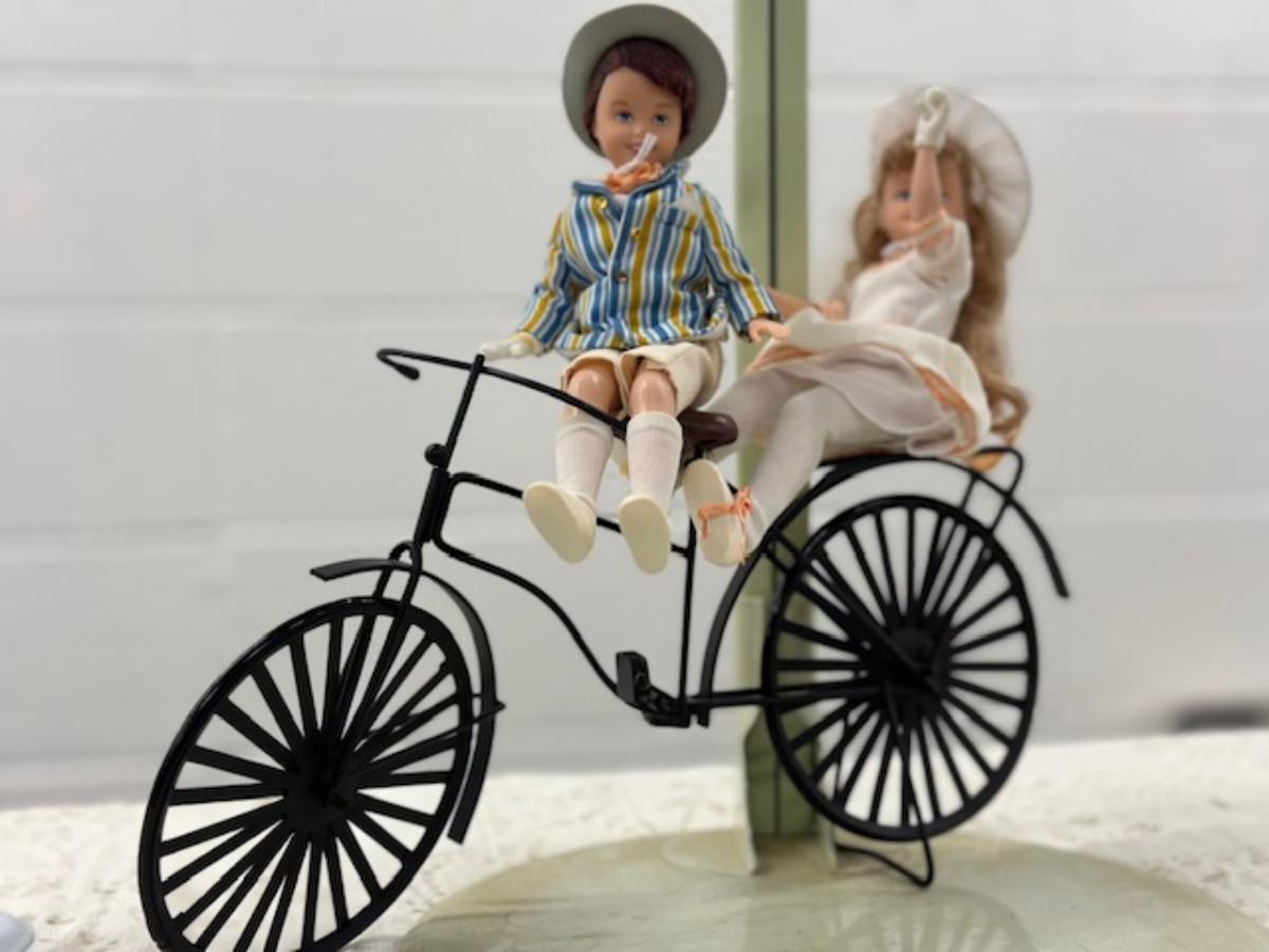 Mattel 1991 Vinyl Girl and Boy on Bike 8"