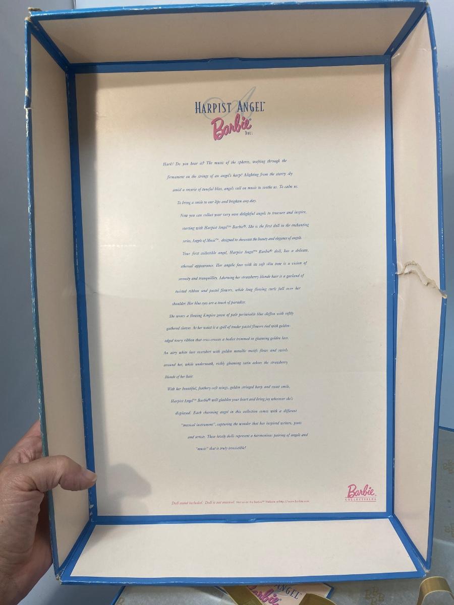 Mattel Angels of Music Collection Harpist Angel Barbie Doll Collector Edition. In original box. Good condition, light wear and damage to box. She is not wearing shoes, not sure if she ever did since she is an angel.
