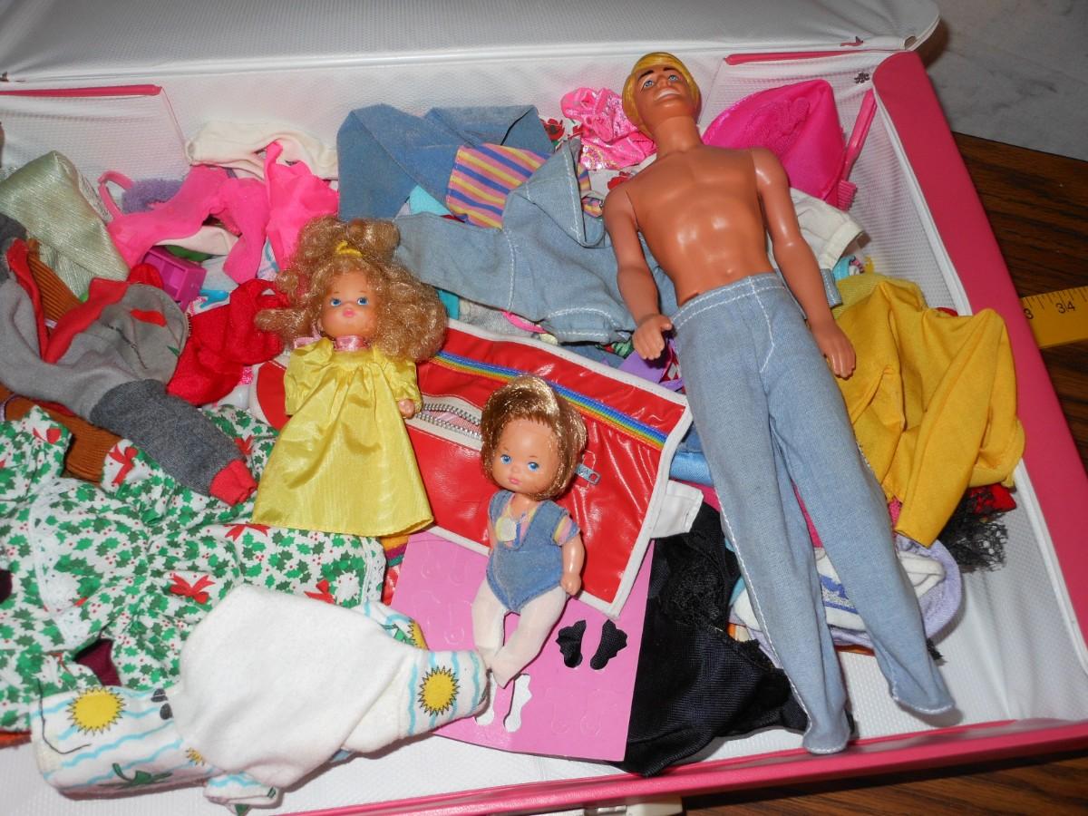 MATTEL BARBIE KEN DOLL, CLOTHES AND A CARRY CASE
