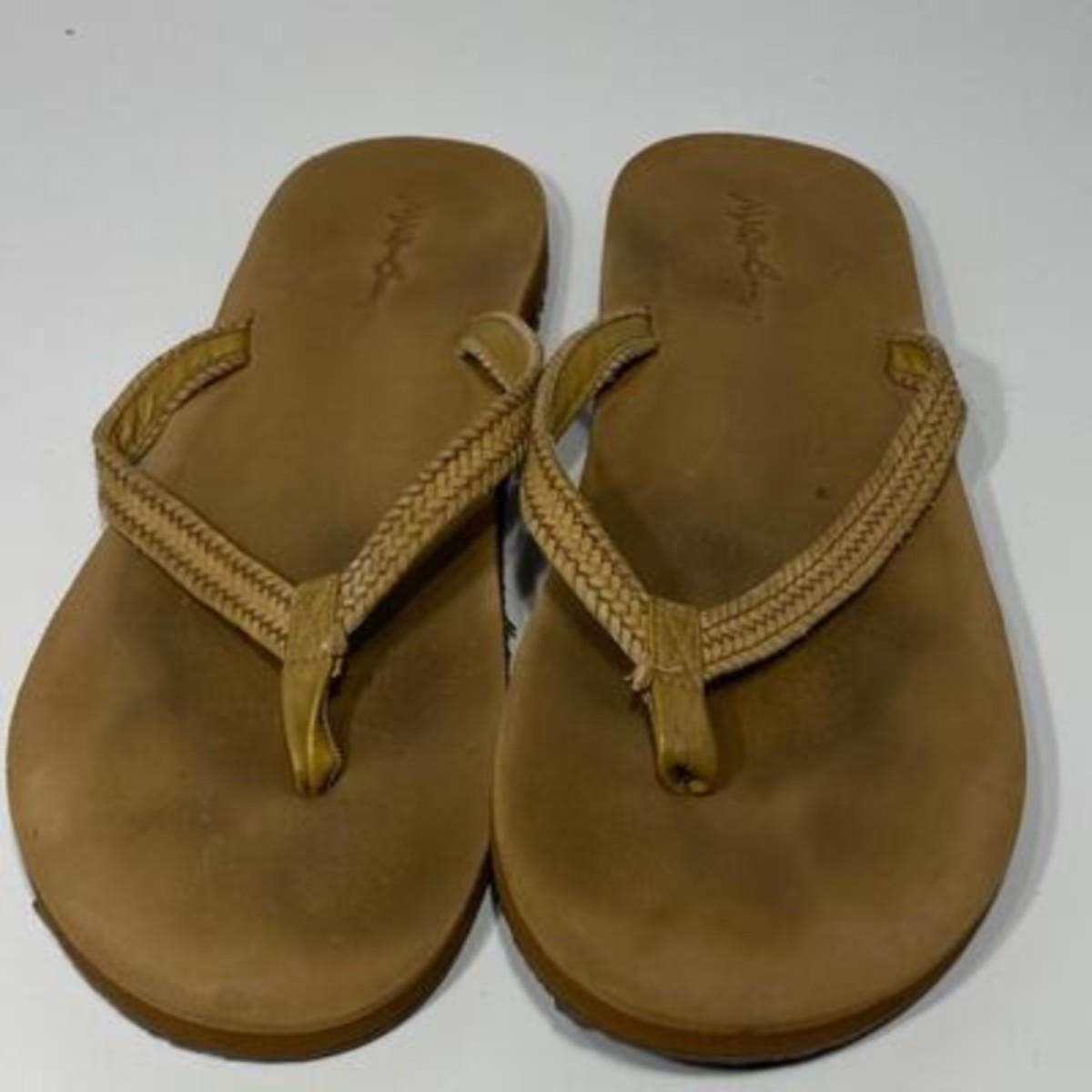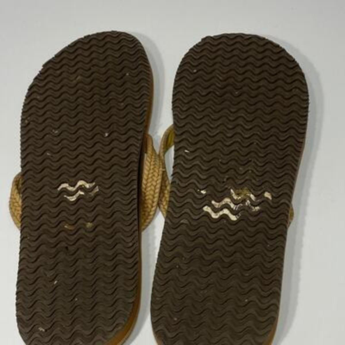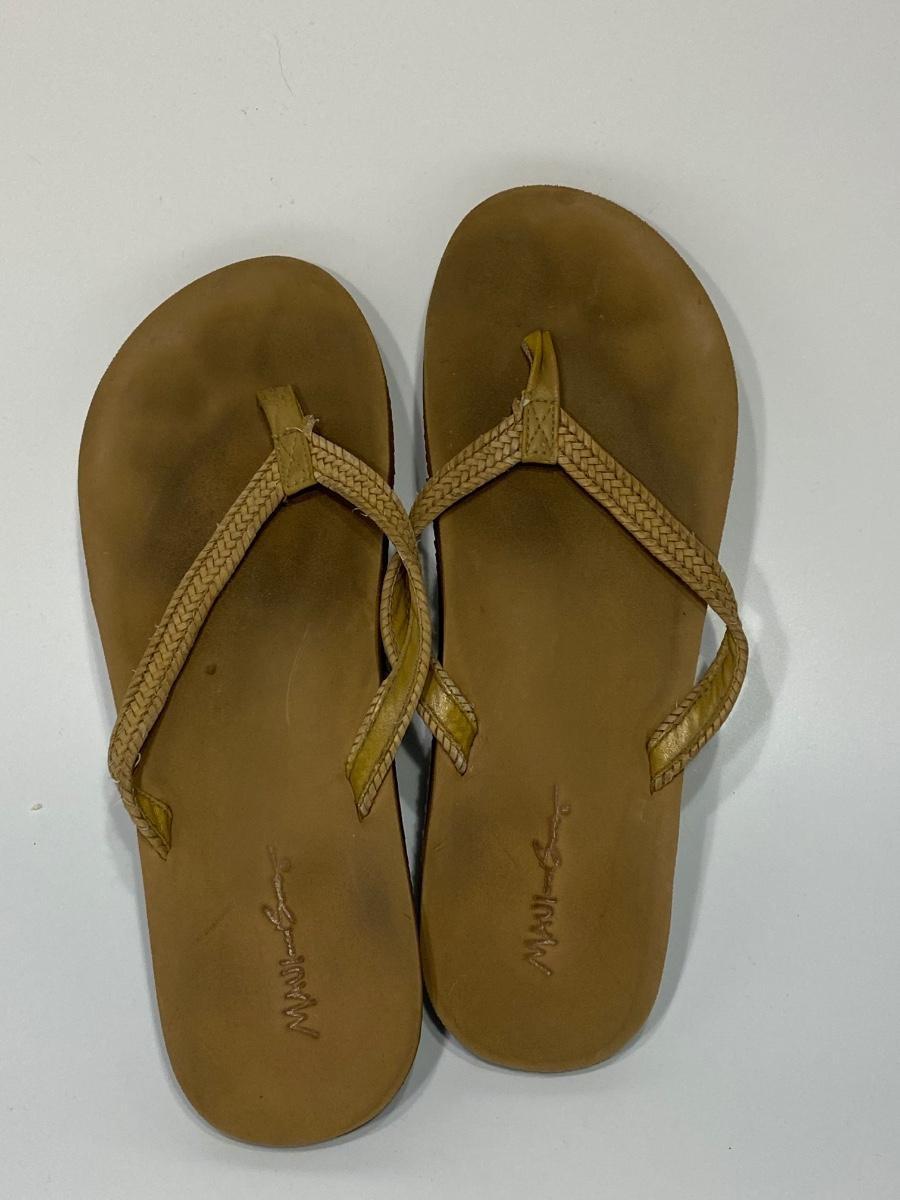 Maui and Sons Tan Sandals, there are some signs of use, but there is no significant damage and is in fair condition. Check pictures for more details.