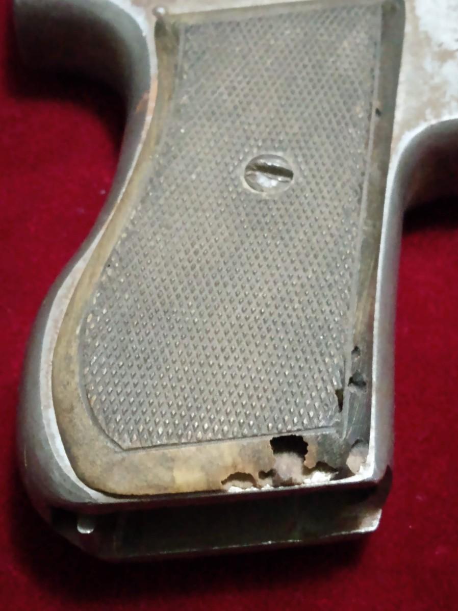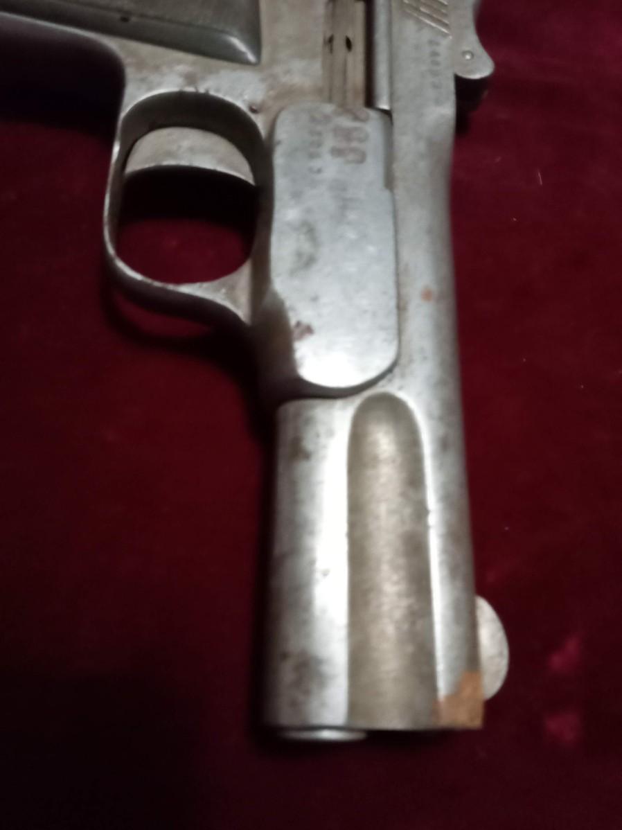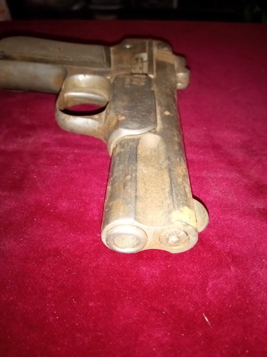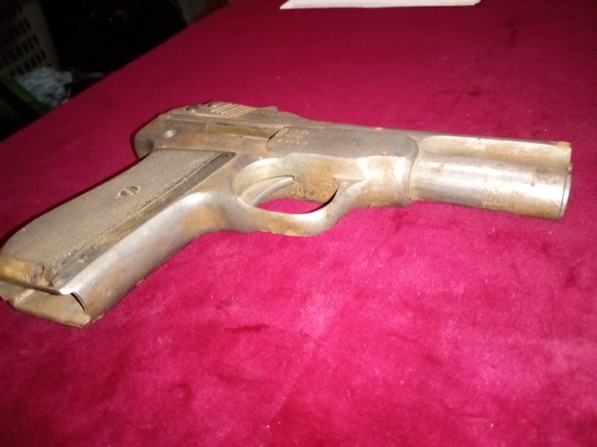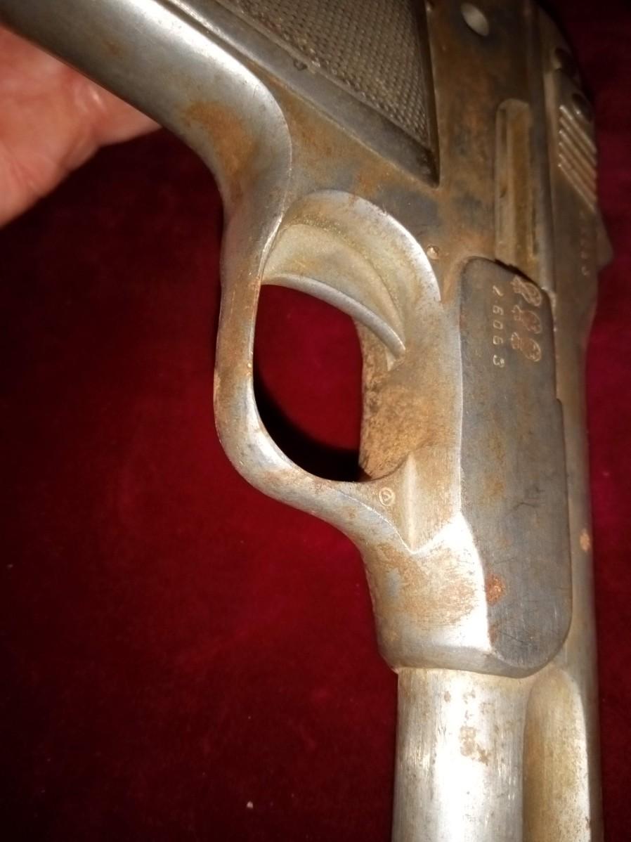THIS PISTOL IS IN ROUGH SHAPE WITH PITTING, A LITTLE RUST, DAMAGE TO THE GRIP AND NO CLIP