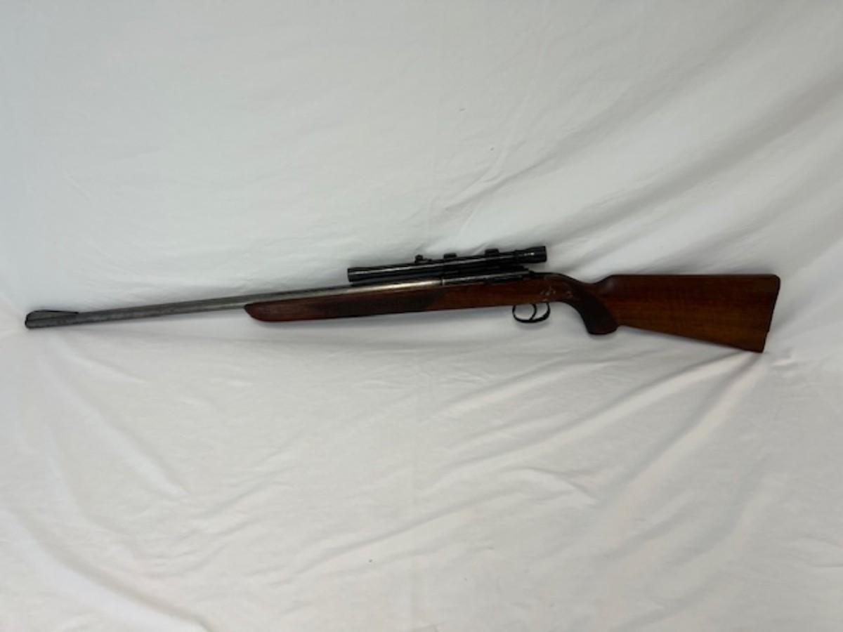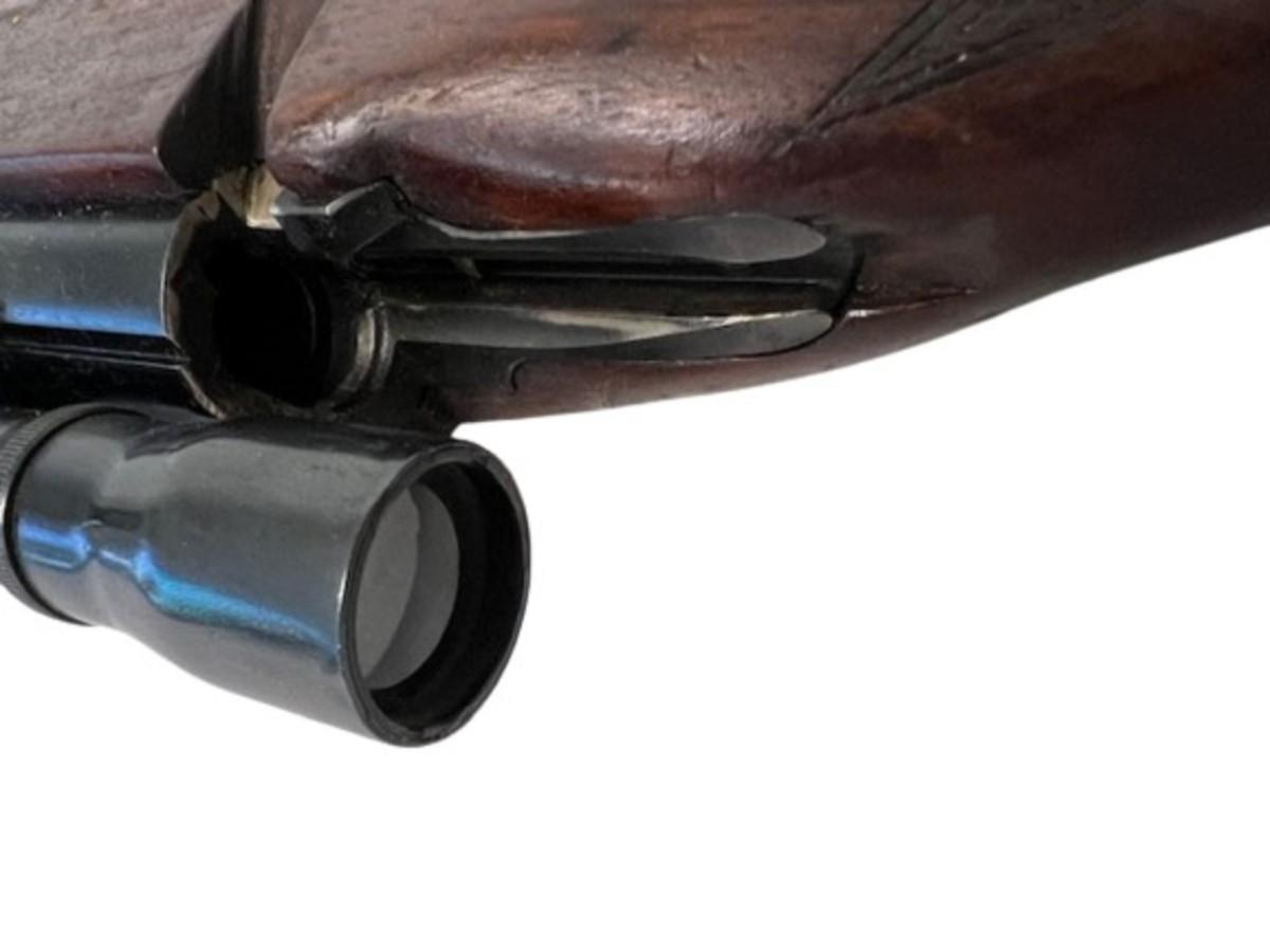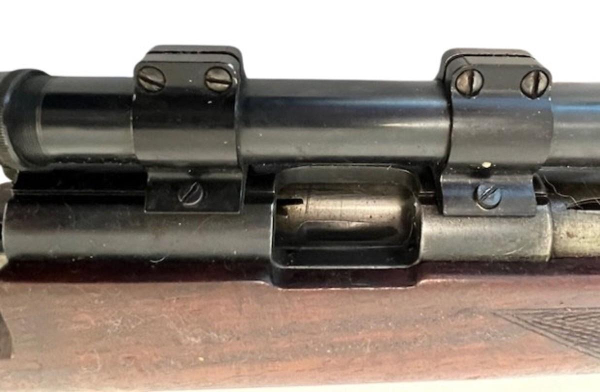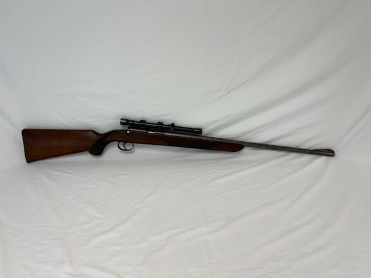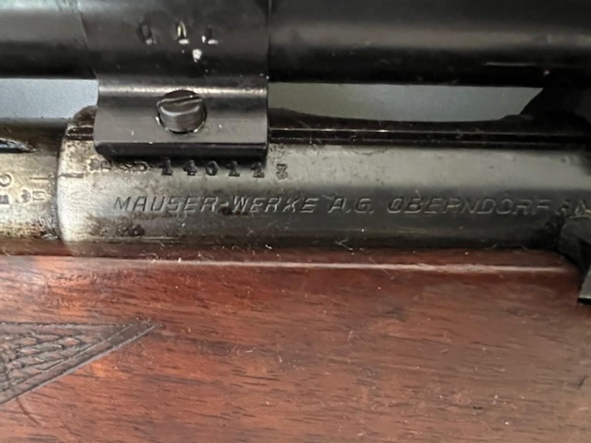 Mauser-Werke A.G. Oberndorf A.N. Possibly an ES340n. Believed to be pre-war. Has a Weaver J-4 scope. Missing the bolt. The butt plate is broken. May have some bluing loss. Serial number 140113. Not tested. Length of barrel: 26". Overall length: 45.5". [KA]