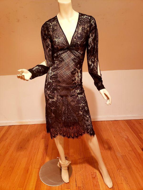 Amazingly Stunning Layering French lace sheath dress with open side long sleeves