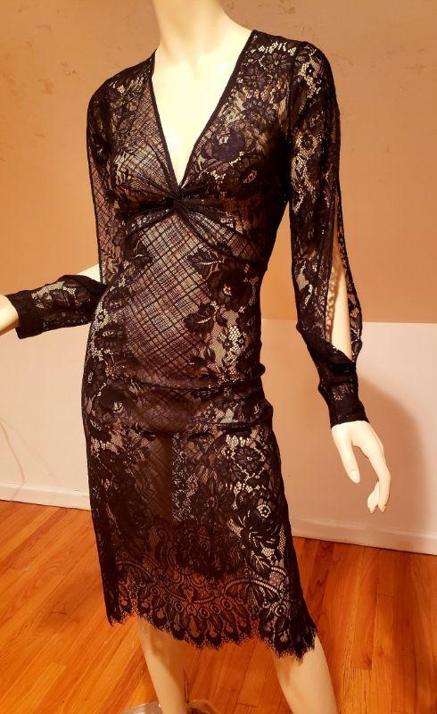 Amazingly Stunning Layering French lace sheath dress with open side long sleeves