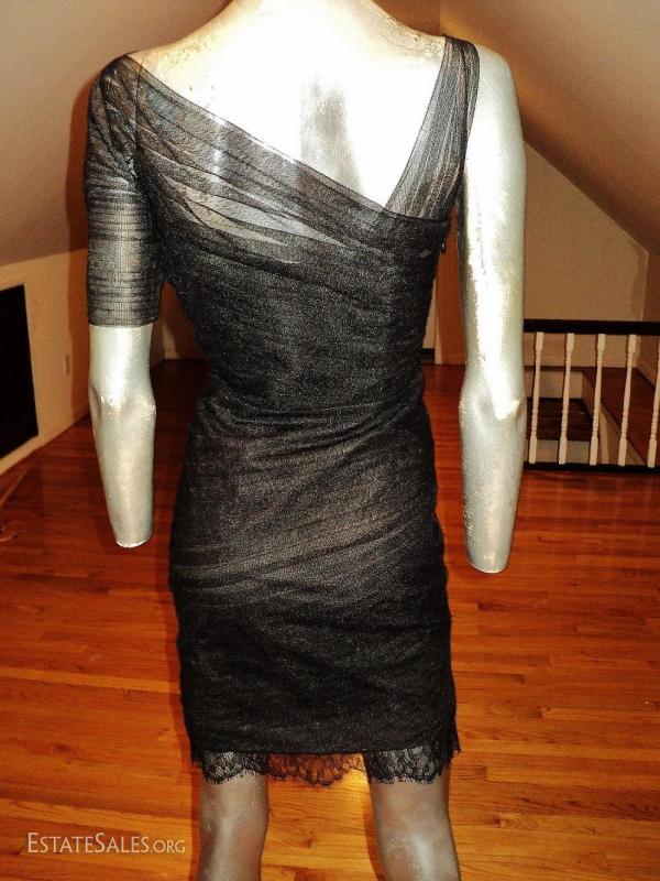 A stunner from the Max Azria collection . The hem is adorned with chantilly lace