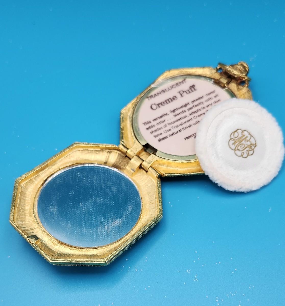 2 compartment compact, new powder and puff. Can be worn as a pendant.