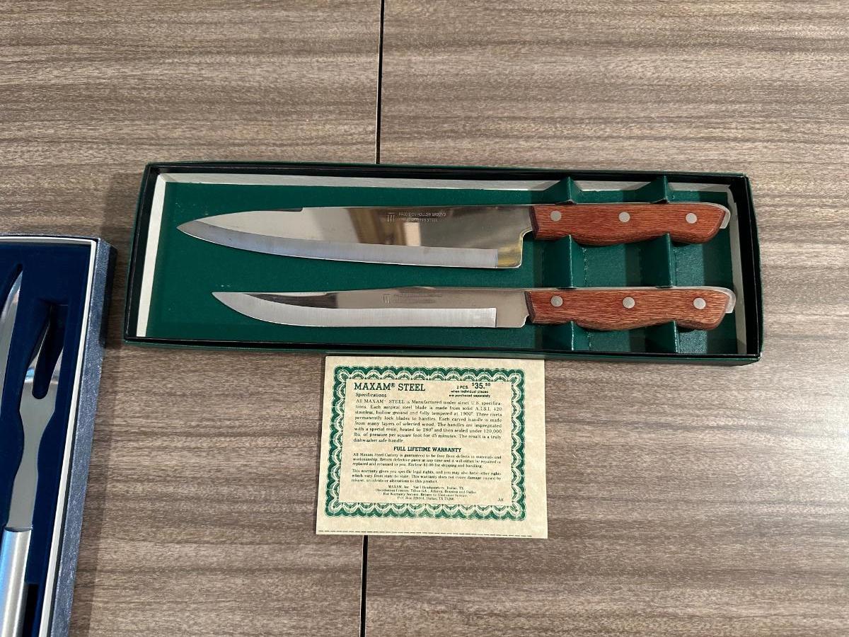 MAXAM CARVING SET & 2 PIECE CUTLERY PLUS BURNCO UTENSILS