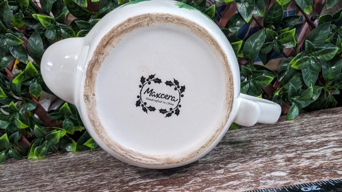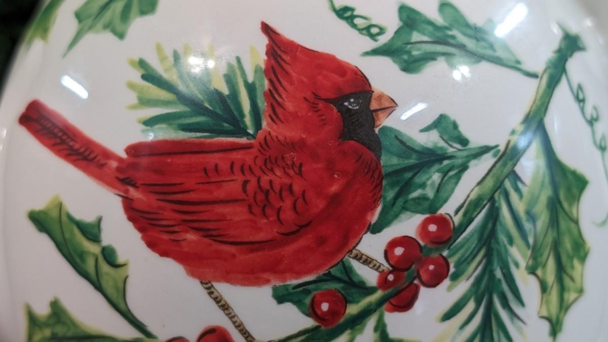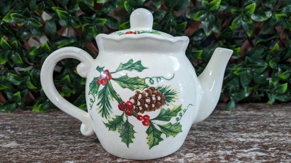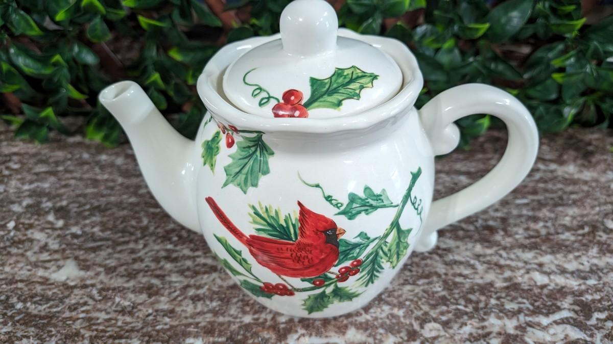 Maxcera Christmas Cardinal Teapot White Porcelain Holly Handcrafted in China