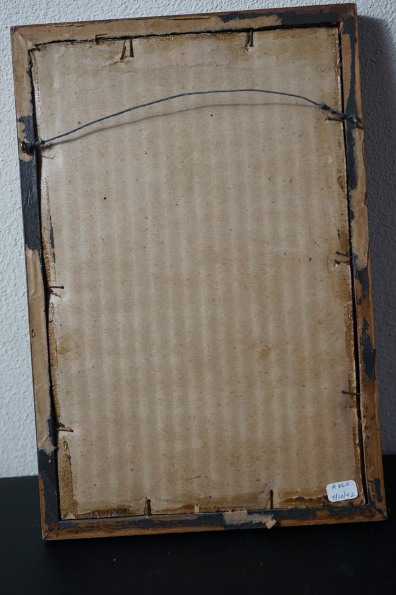 framed in blue painted with carved gilded 1920's frame: 10 3/4" by 7"