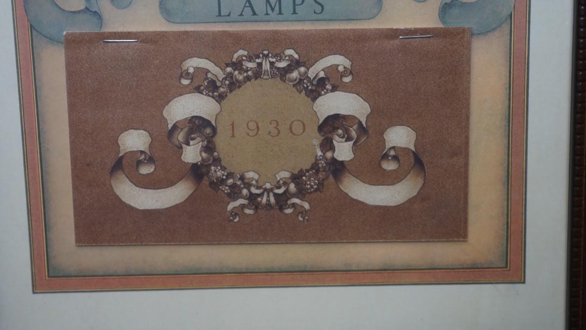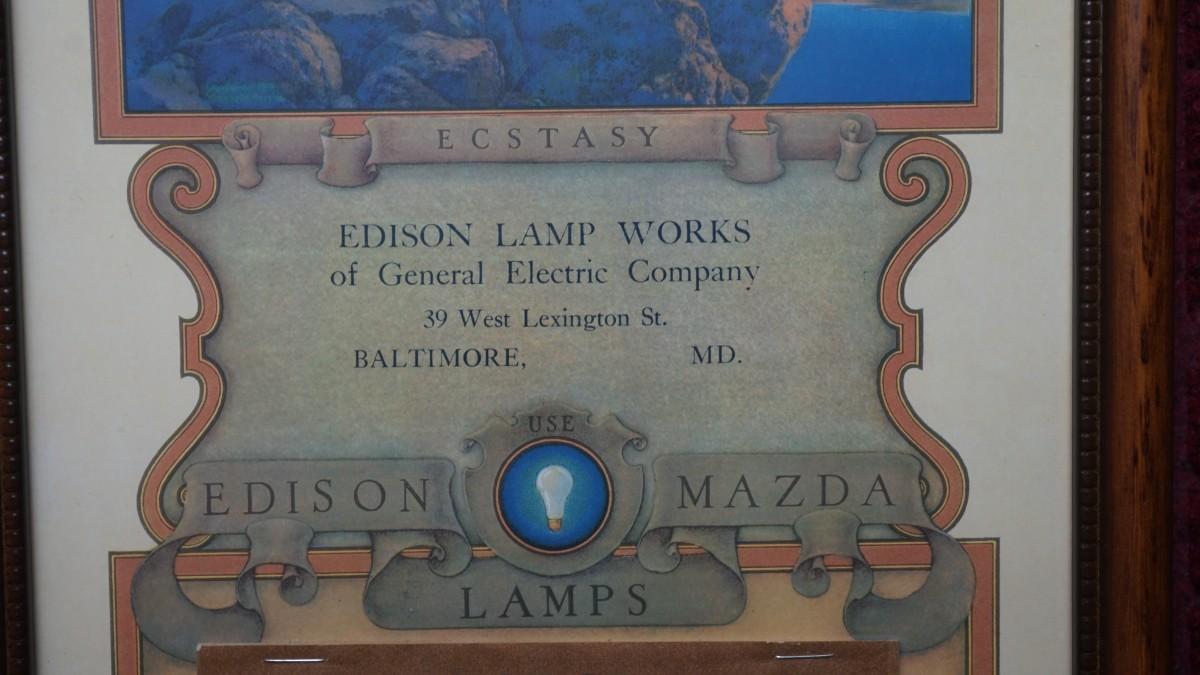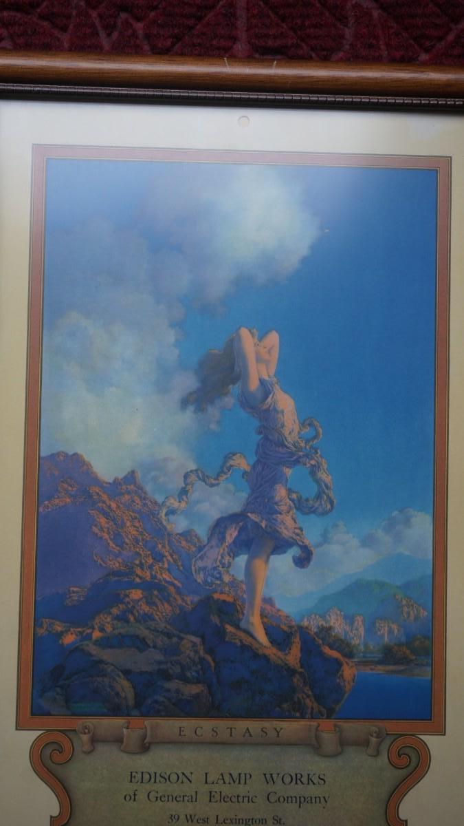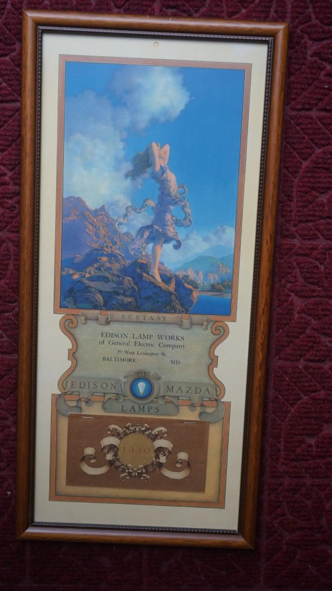 MAXFIELD PARRISH "ECTASY " FRAMED CALENDAR 1930 FOR EDISON LAMP WORKS