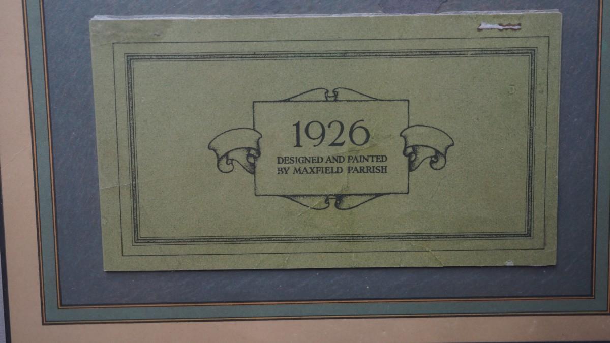 MAXFIELD PARRISH PRINT "ENCHANTMENT" EQUITABLE ELECTRIC ADVERTISING CALENDAR 1926 FRAMED
