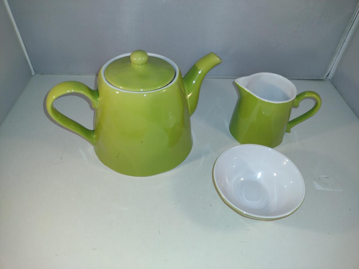 Maxwell and Williams 'Krinkle' Teapot, Creamer, and Sugar Bowl