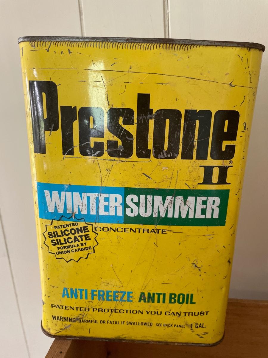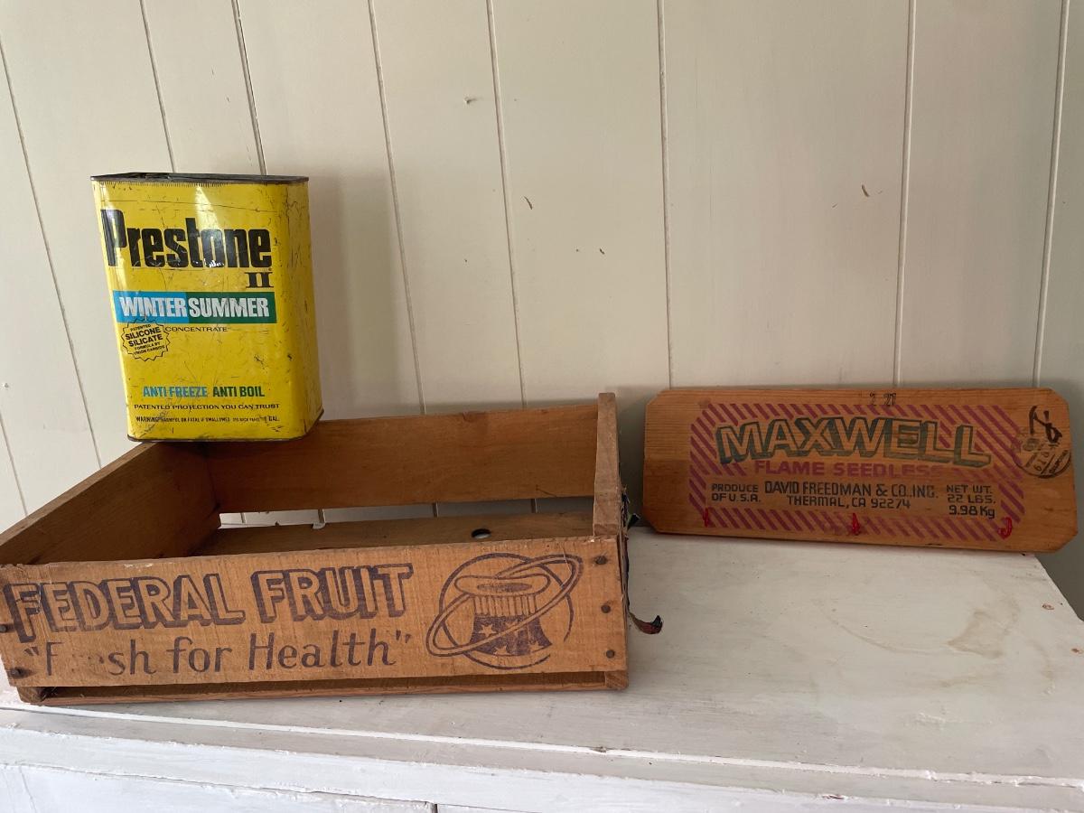 Maxwell decor with hooks, Federal box and Prestone antifreeze