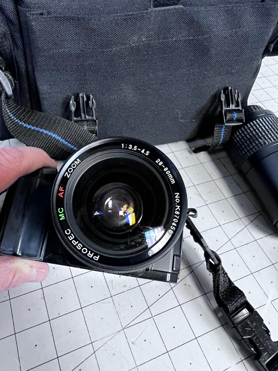 USED. Appears to be in Excellent Condition, with Case. Buying it to work. Has Extra Flash and lens. BUYING IT TO WORK!
