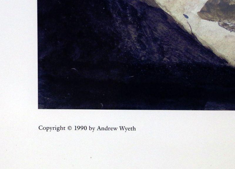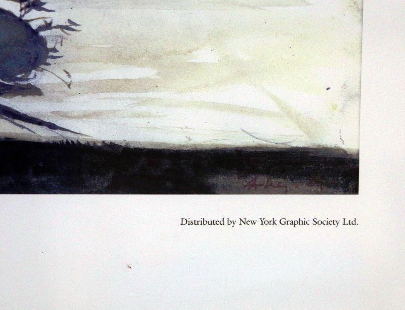 Nice decor piece - vintage print by Andrew Wyeth in frame with glass front. Image - 13.5" x 11", frame - 23" x 19". very good condition.