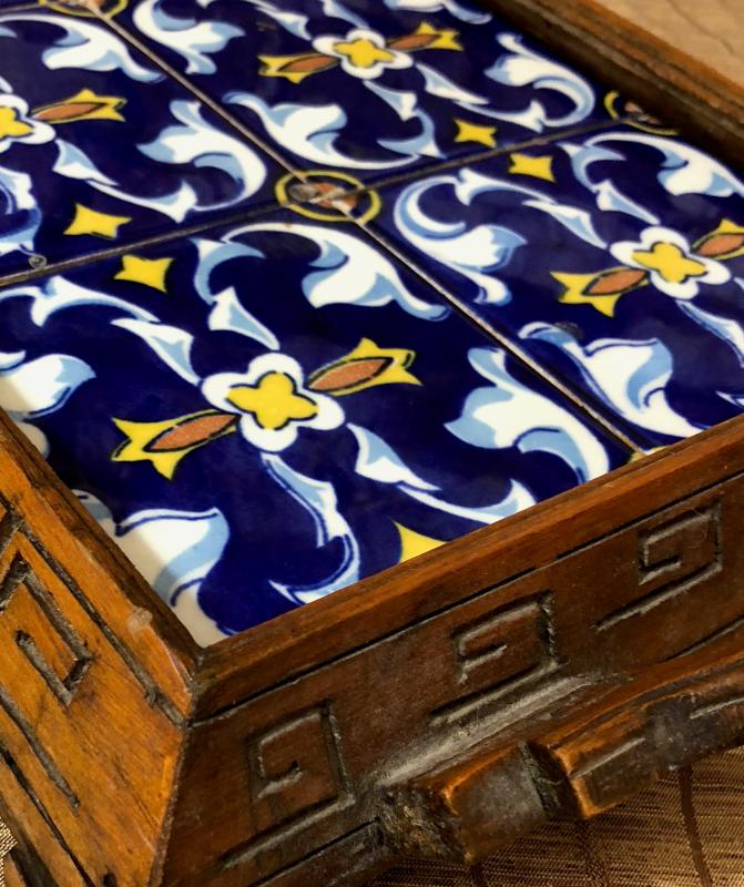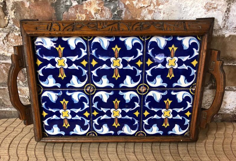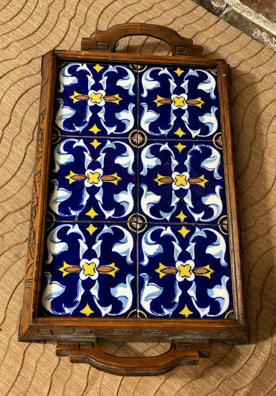 Here is a beautiful Maya de Mexico tile on carved wood tray..17 x 11''excellent condition...