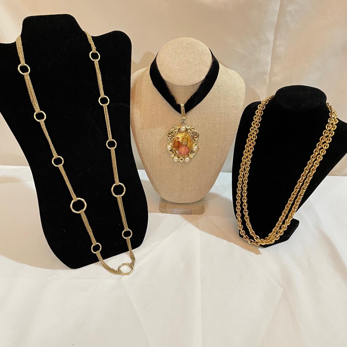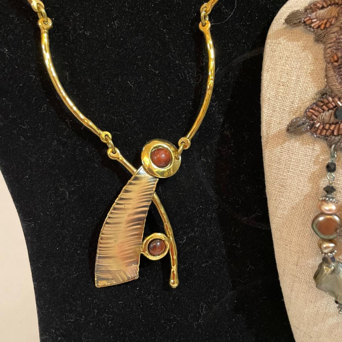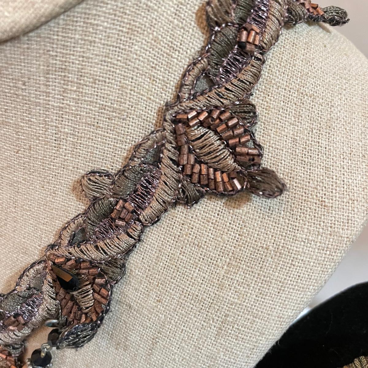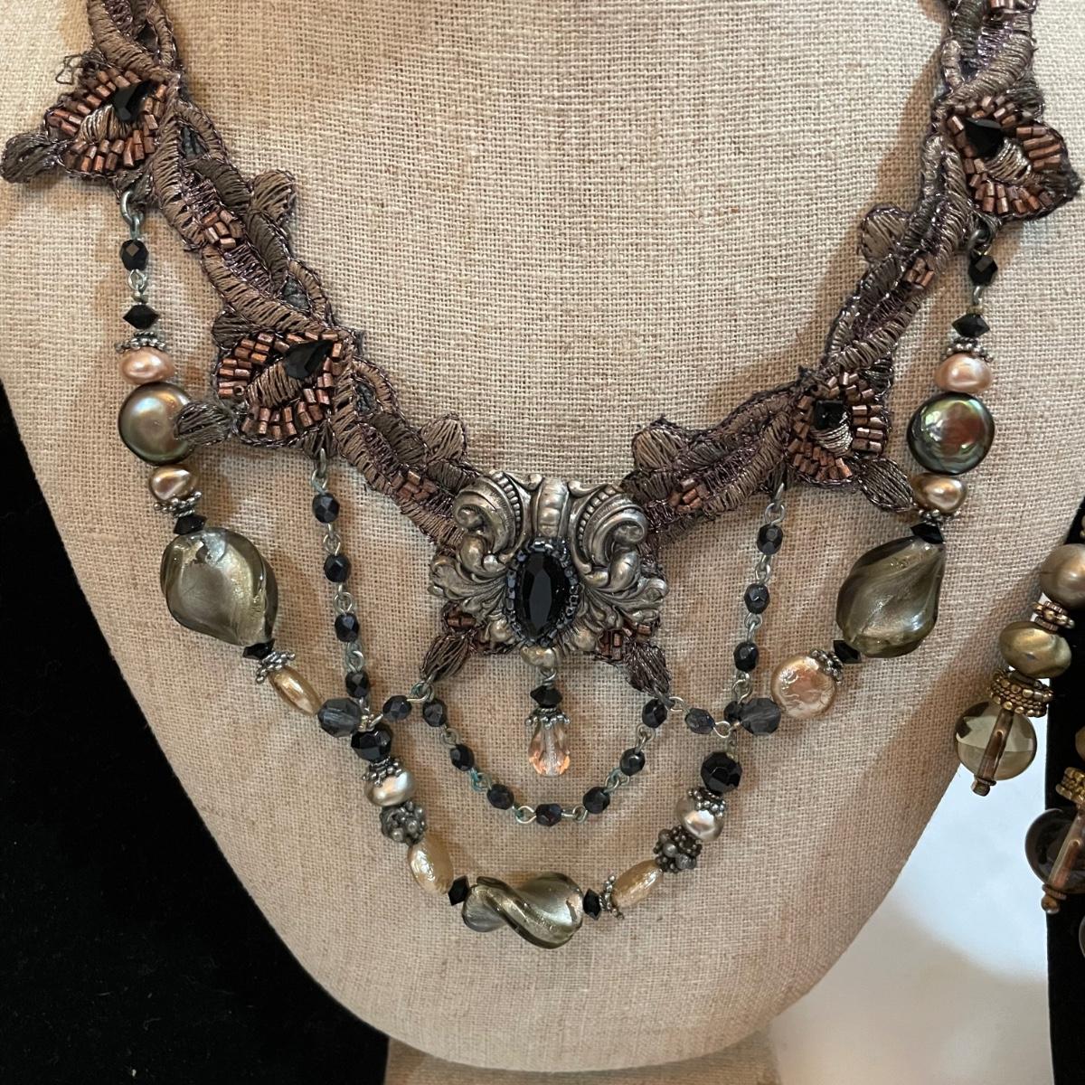 Twelve necklaces featuring a set of bright red and black jewels and what appears to be a Maya hand stitched embroidered necklace with resin beads and metal adornments. Ten other fun and funky necklaces ranging from choker sized to full length. See images. Shipping available. All sales are final. No returns or refunds. Please bid accordingly.