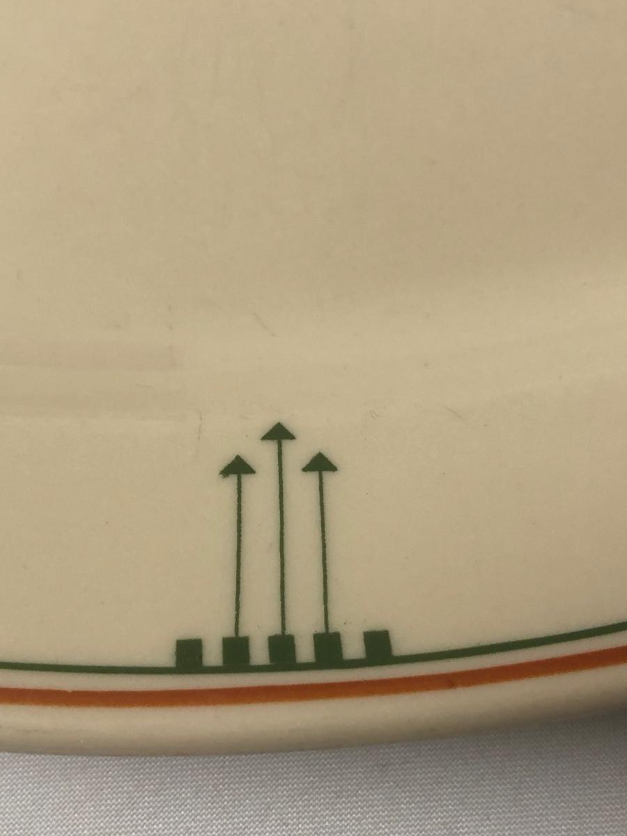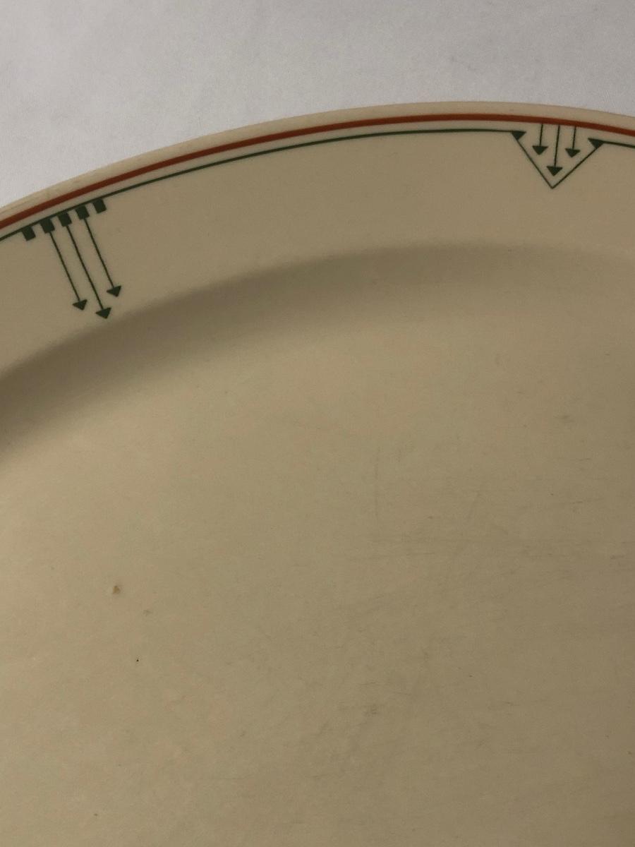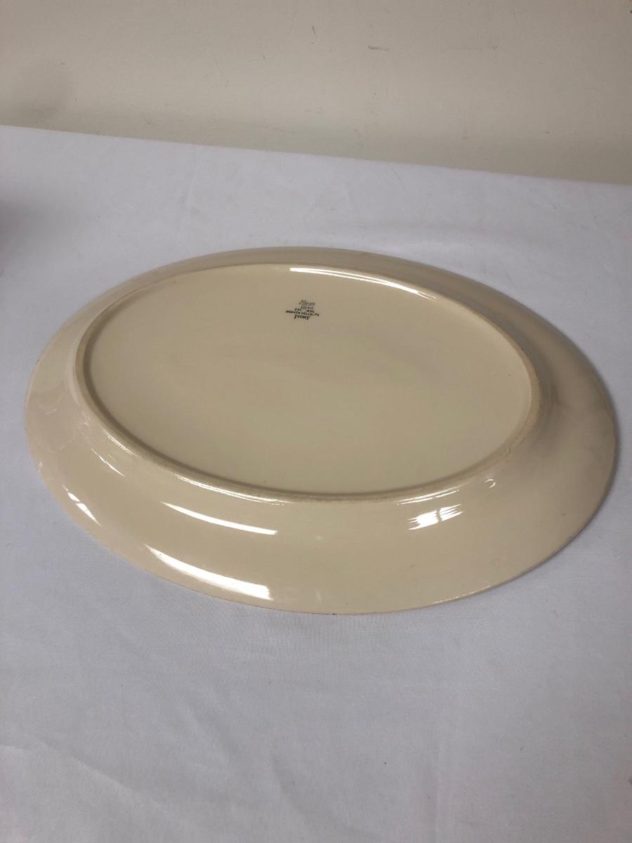 This platter measures 16” x 12”. It has no apparent chips or cracks. Note the arts and crafts design. Shipping Available.