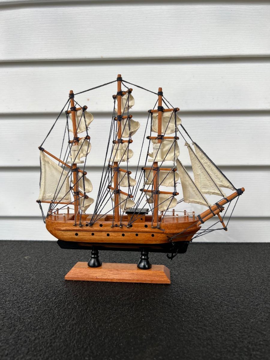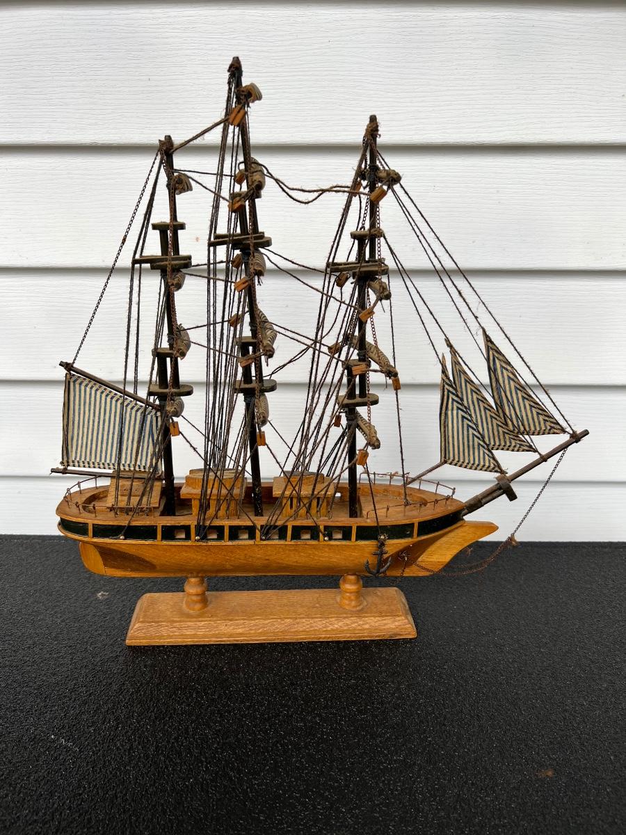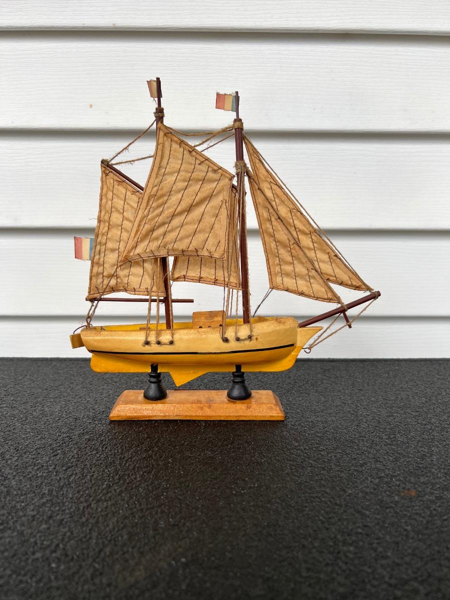 Lot of boats MAYFLOWER measures 9 1/2 inches tall, 9 1/2 inches long, and 2 inches wide. SARDNIER measures 9 inches tall, 8 1/2 inches long, and 2 inches wide. Unknow largest boat measures 14 inches tall, 14 inches long, and 2 inches wide.