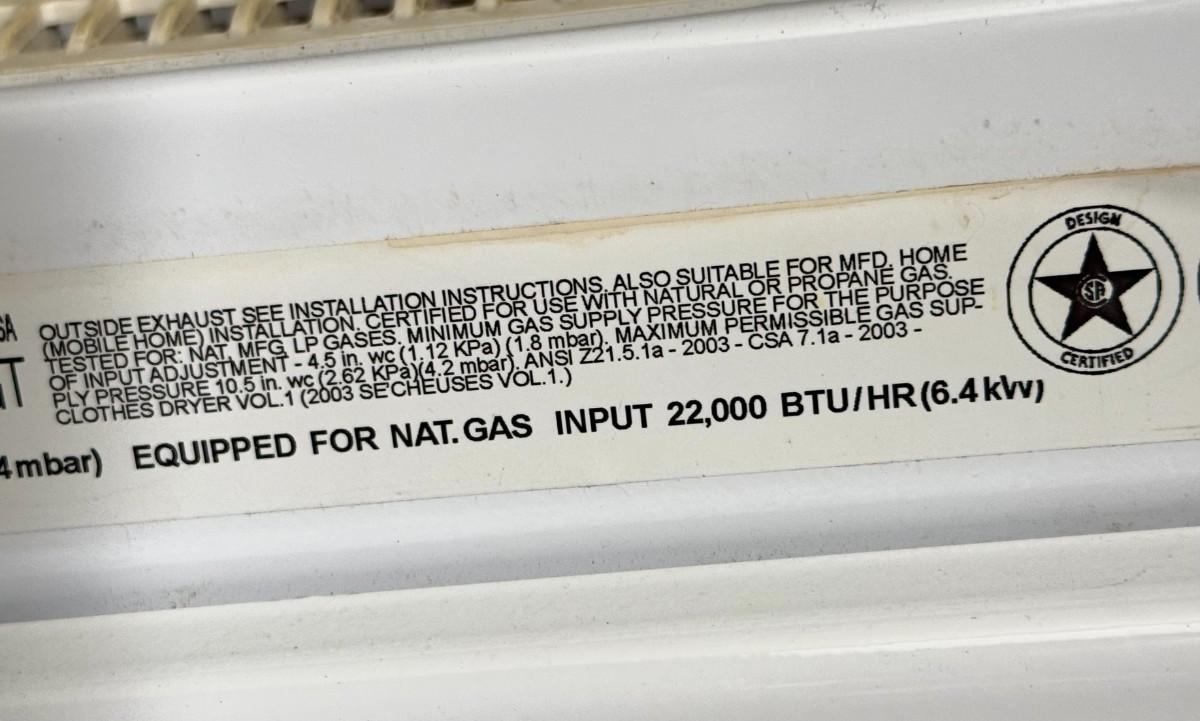 *Gas Hookup Dryer