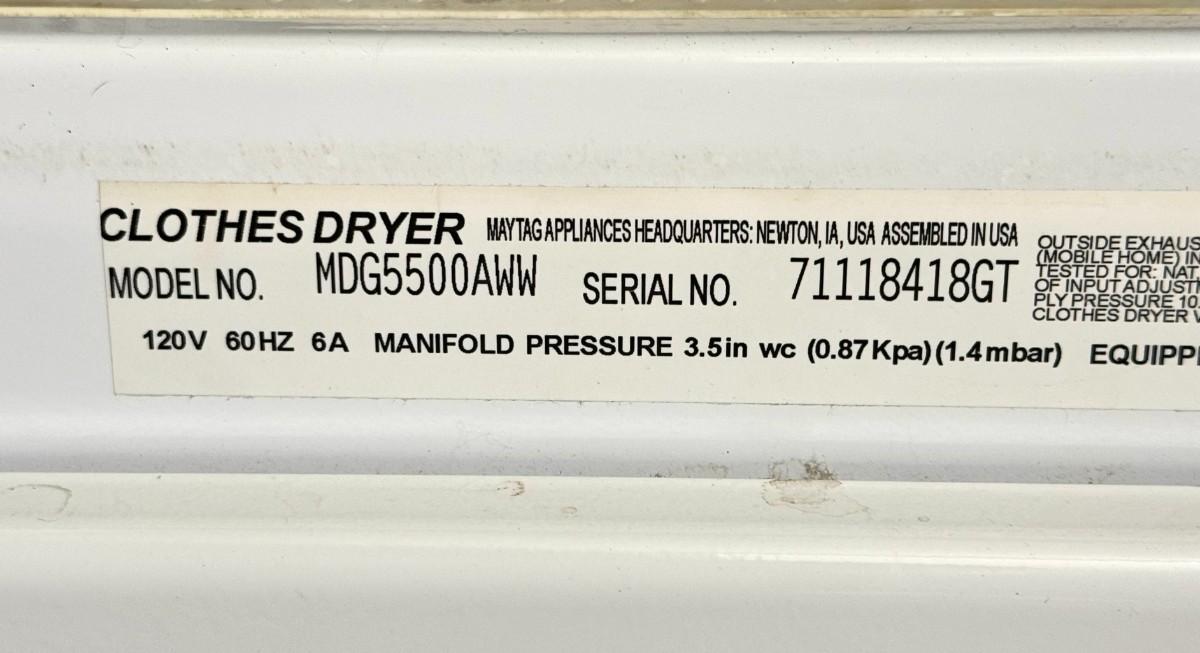 Maytag 27" Neptune Gas Dryer with Electronic Touch-Pad Controls - Model # MDG5500AWW - GAS Hook Up