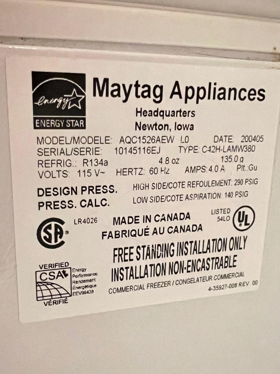 MAYTAG ~ Amana ~ Deep Freeze Food Freezer