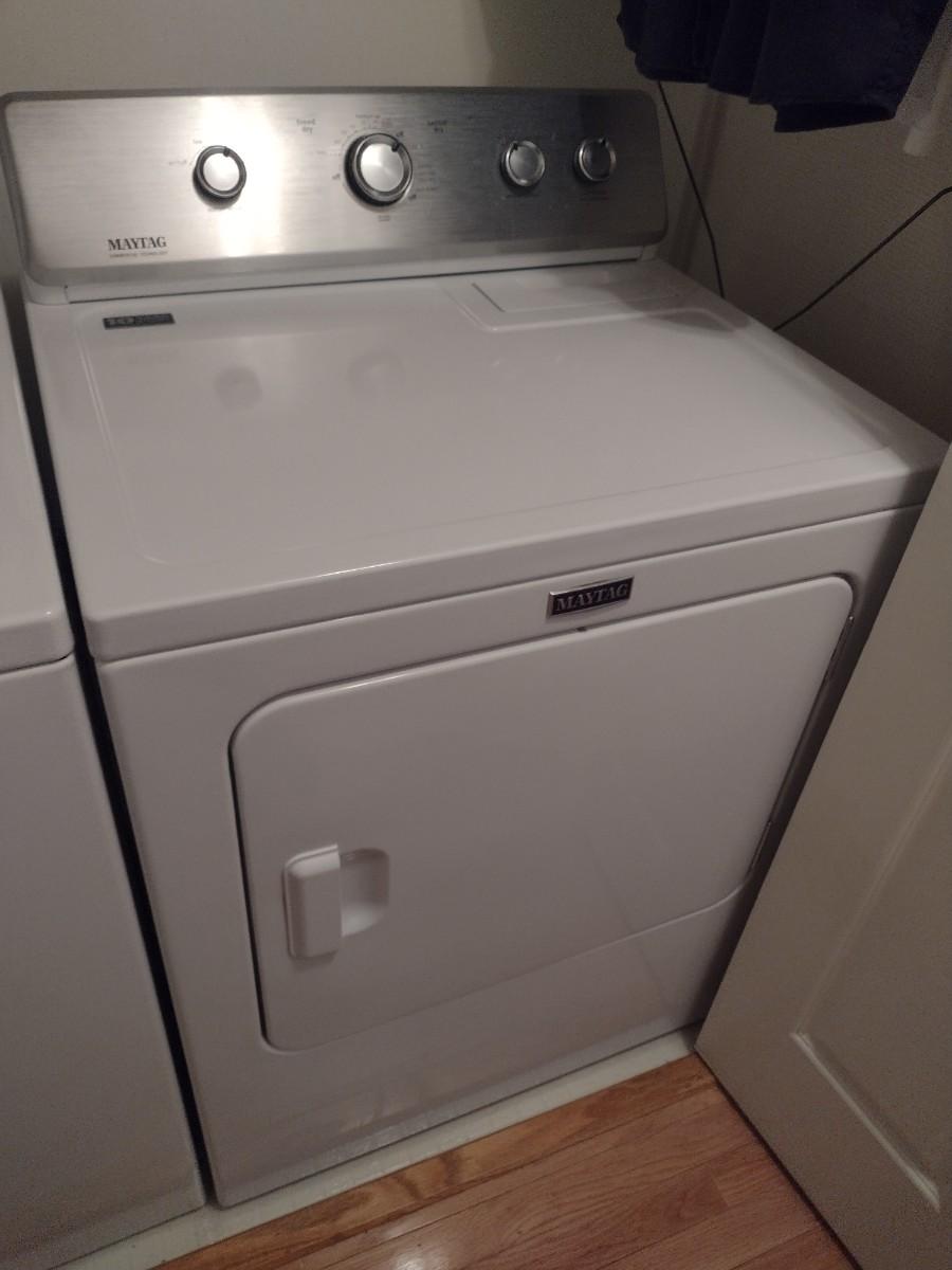 Maytag Brand Frontload Clothes Dryer Unhooked and Item stored within feet of driveway for easy and quick load.