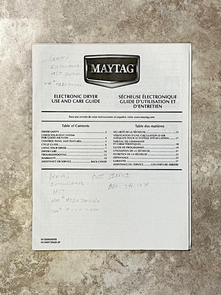 MAYTAG ~ Bravos Commercial Technology Electric Dryer ~ 2012