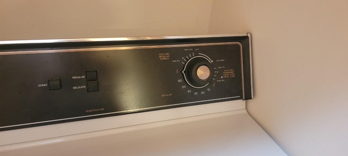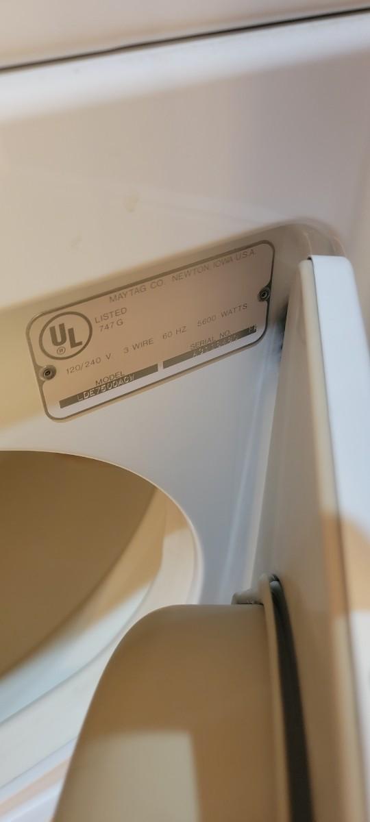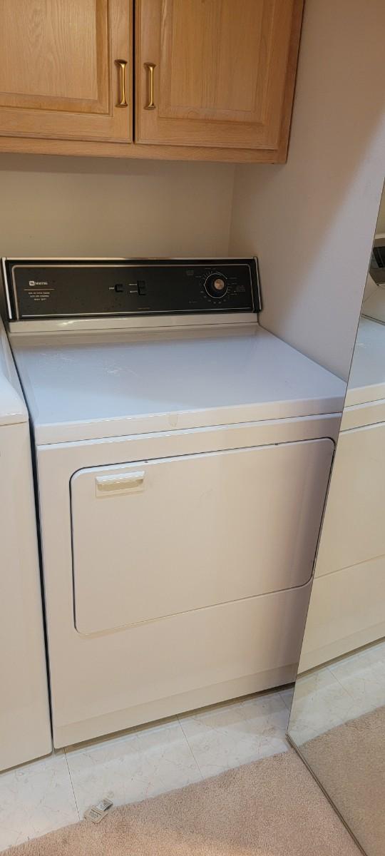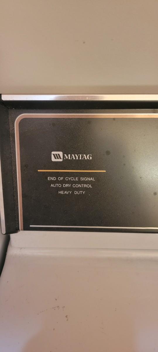 Maytag dryer, auto dry control, heavy duty. 27" deep x 29" across, 37.5" H front, 46" H back